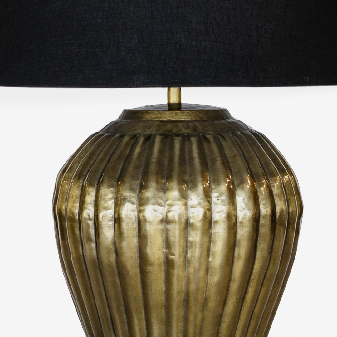 Kerali Ribbed Gold Lamp and Black Linen Shade