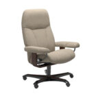 Enjoy your time at the home office! Soft cushioning and sublime support help you focus on the task and work more efficiently. The Stressless® home office chairs have the same functions as a Stressless® recliner, offering good lumbar and head support both when you sit upright and when you recline. The Stressless® Consul home office chair is a classic chair with firm seating comfort and wheels that make it easy to move around. You can adjust the seat height to find the perfect position.