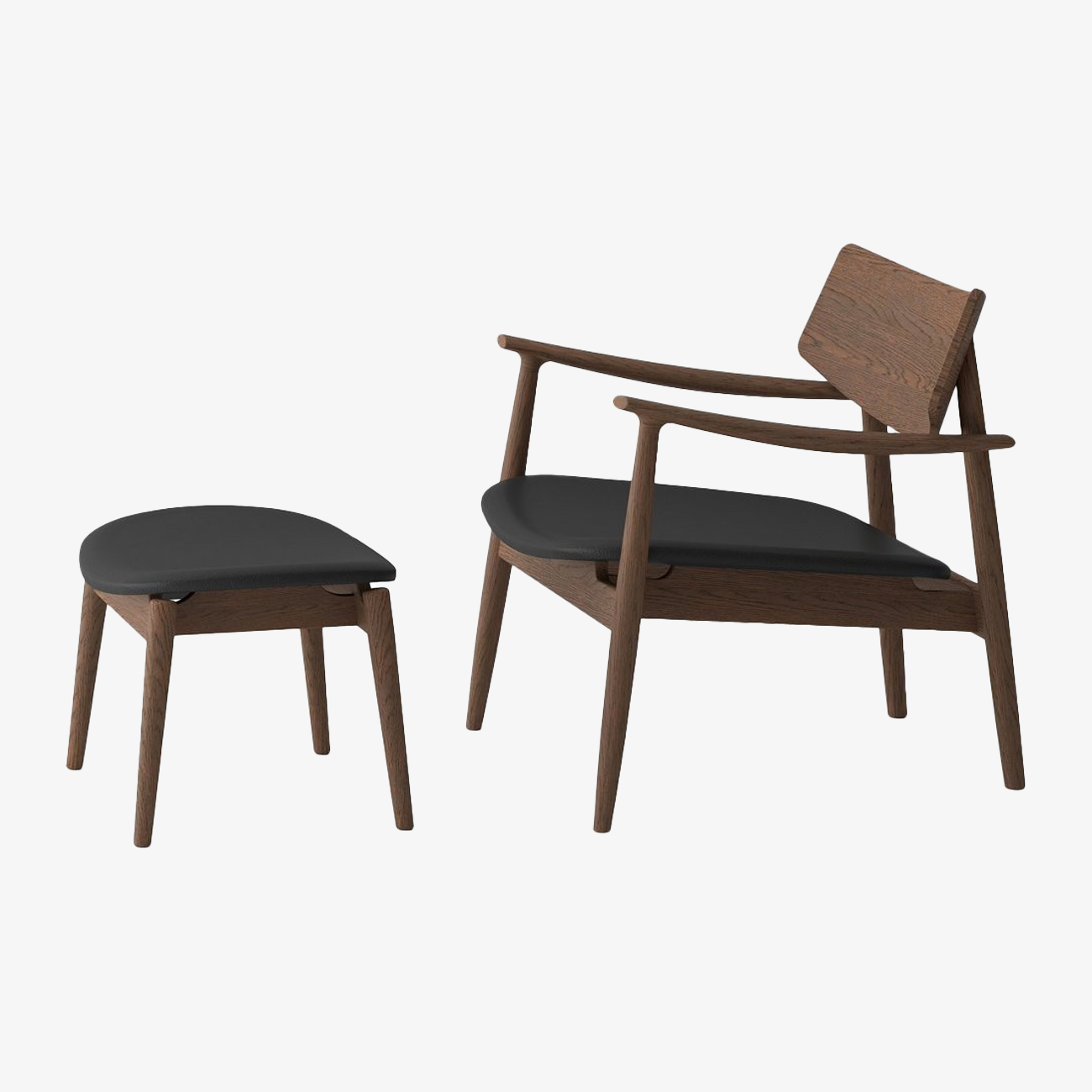 Designed to complete the Alta Leisure Chair, the Alta Footstool brings comfort and cohesion to any space. Its solid oak frame in a warm walnut finish is both sturdy and sculptural, while the black leather cushion offers a soft, supportive place to rest your feet. The low-profile design mirrors Alta’s Nordic stance, creating a harmonious and relaxed silhouette that invites slowing down – in style.
