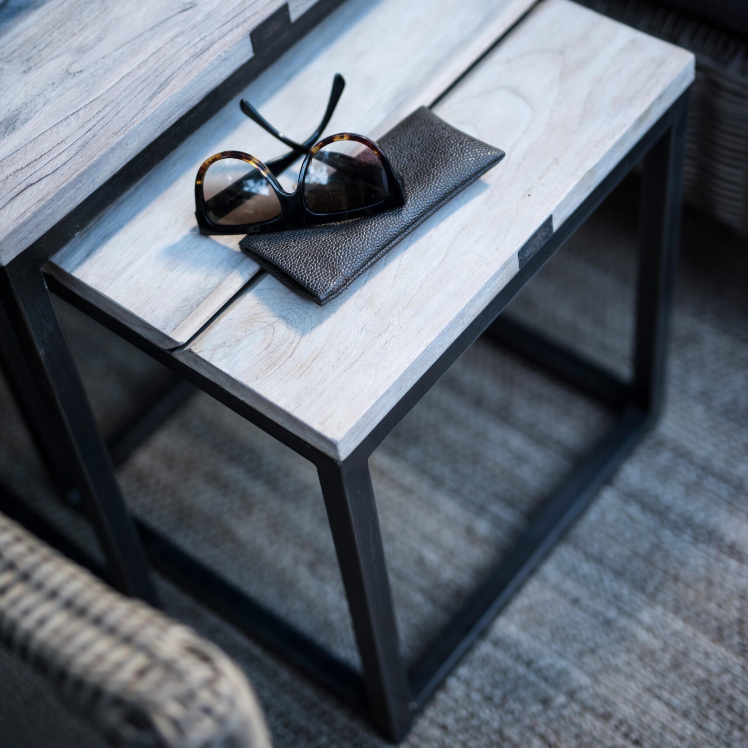 Wooden furniture with a sense of style. Whether you prefer a rustic look or a well polished surface, our wood brings natural style and texture to any space. The Anson Outdoor Range features a wooden teak top with a black aluminium base.