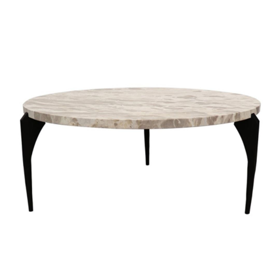 Introducing our Ariel Coffee Table, where every piece tells its own unique story. Crafted from exquisite beige-colored marble, each tabletop showcases its distinct patterns and veining, ensuring that no two pieces are alike. Elevating its elegance, the table sits atop slim-line tapered black legs of hand-forged steel, adding a modern twist to its timeless design.