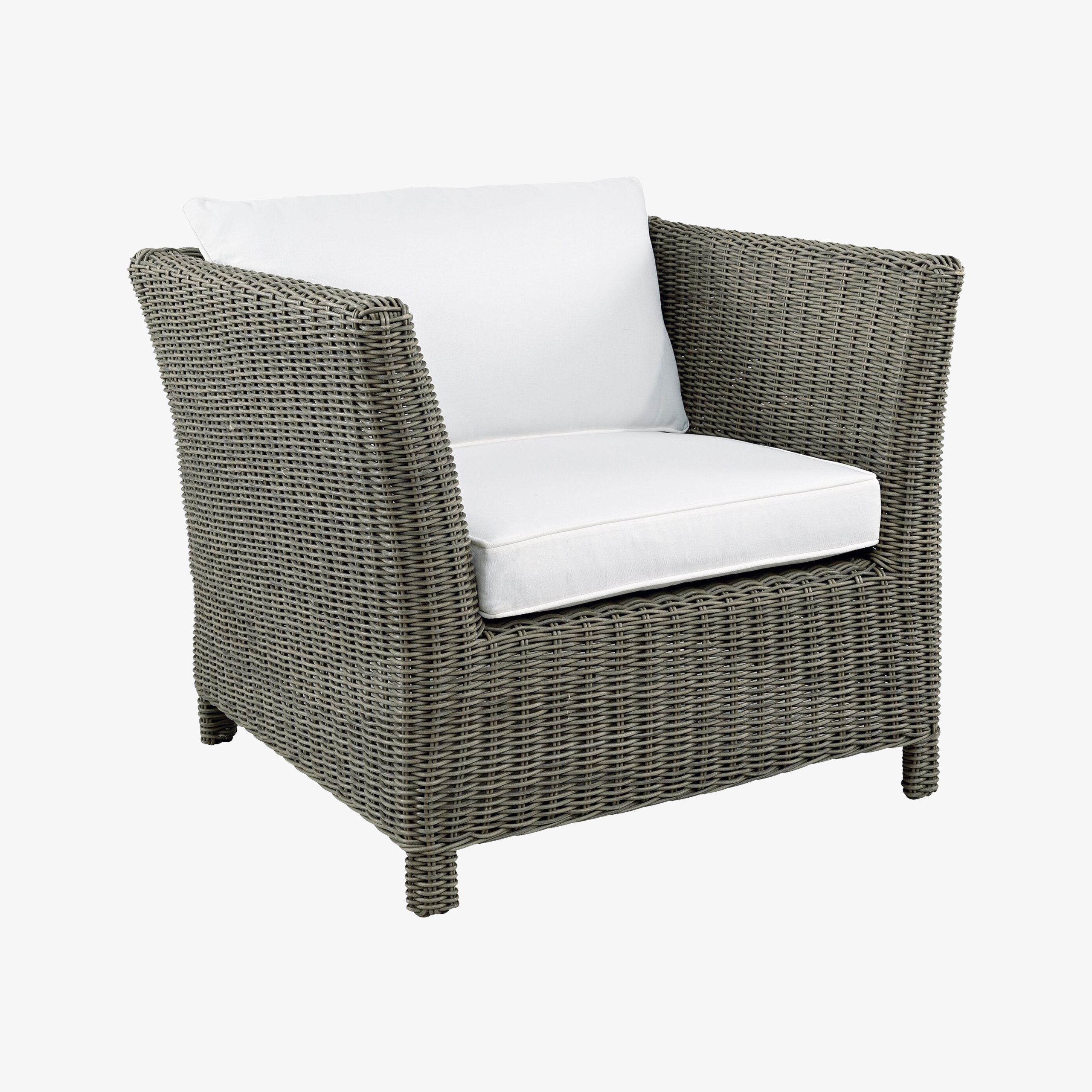 Classic wicker style furniture, created on a rustproof powder coated aluminium frame using handwoven polyethylene weave that combines a classical natural “vintage” finish with extreme durability. Complemented with outdoor cushions in quick dry foam and solution dyed acrylic fabric.