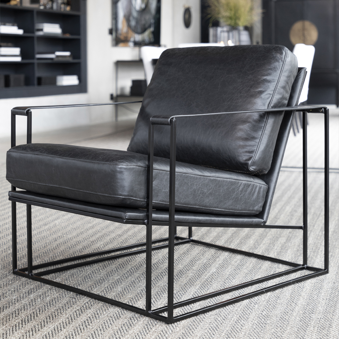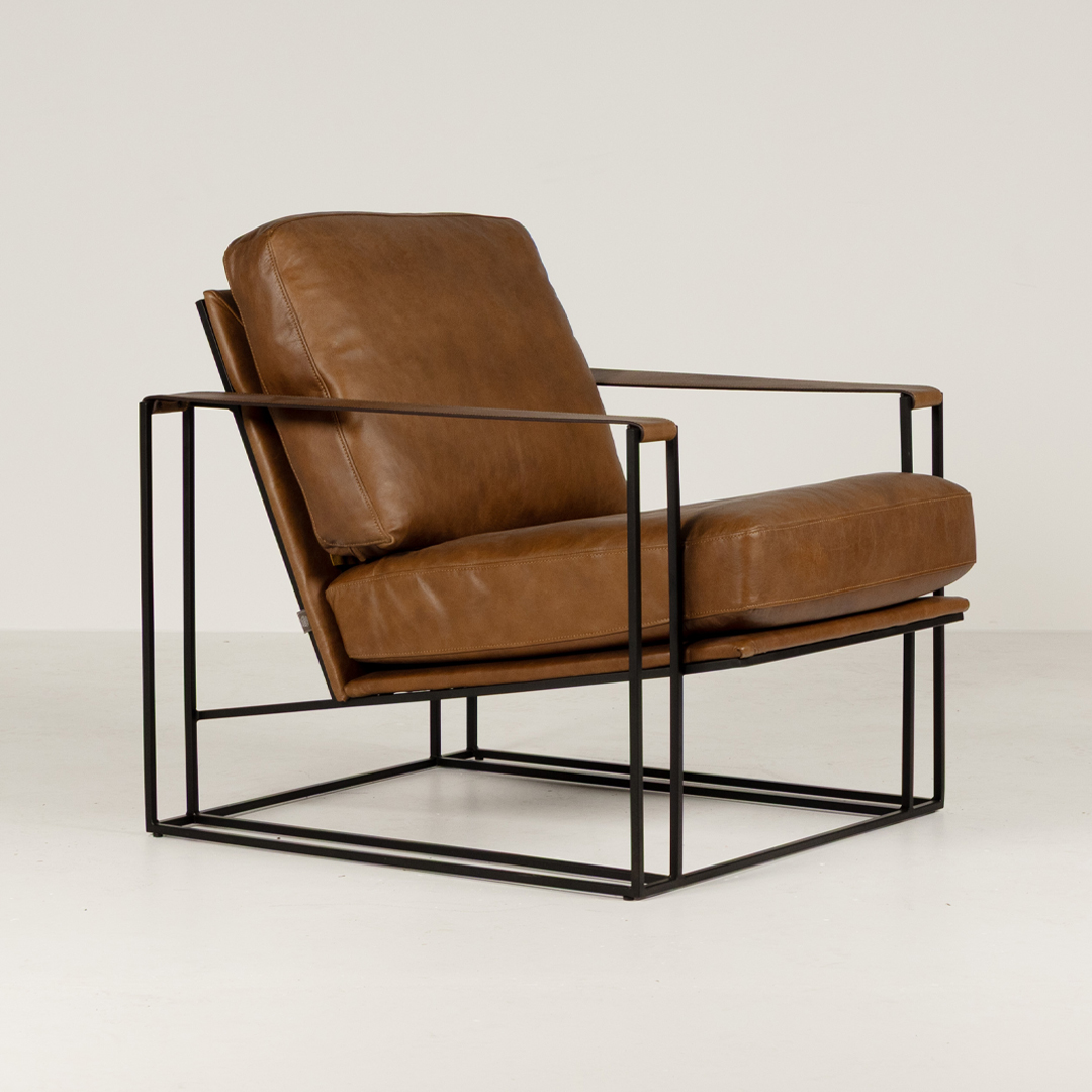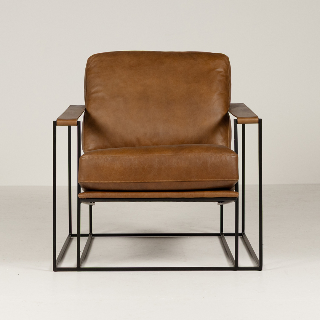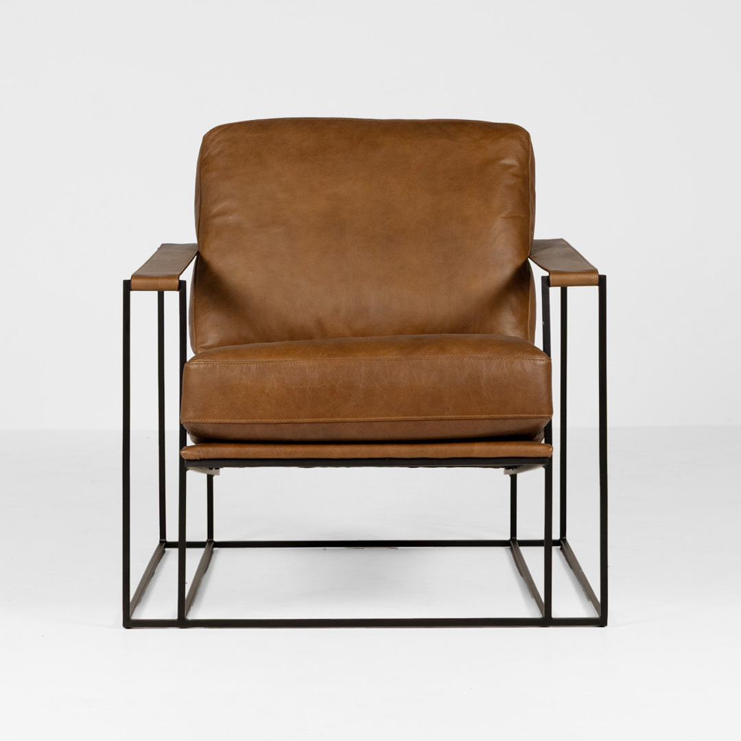 The Bellagio leather armchair offers a premium seating experience with top-quality full-grain leather, which highlights the material’s natural beauty and durability. The modern design is combined with a sturdy metal frame and a soft seating area, giving the chair a sleek and industrial feel. Perfect for those seeking an armchair that exudes quality and provides high comfort.