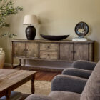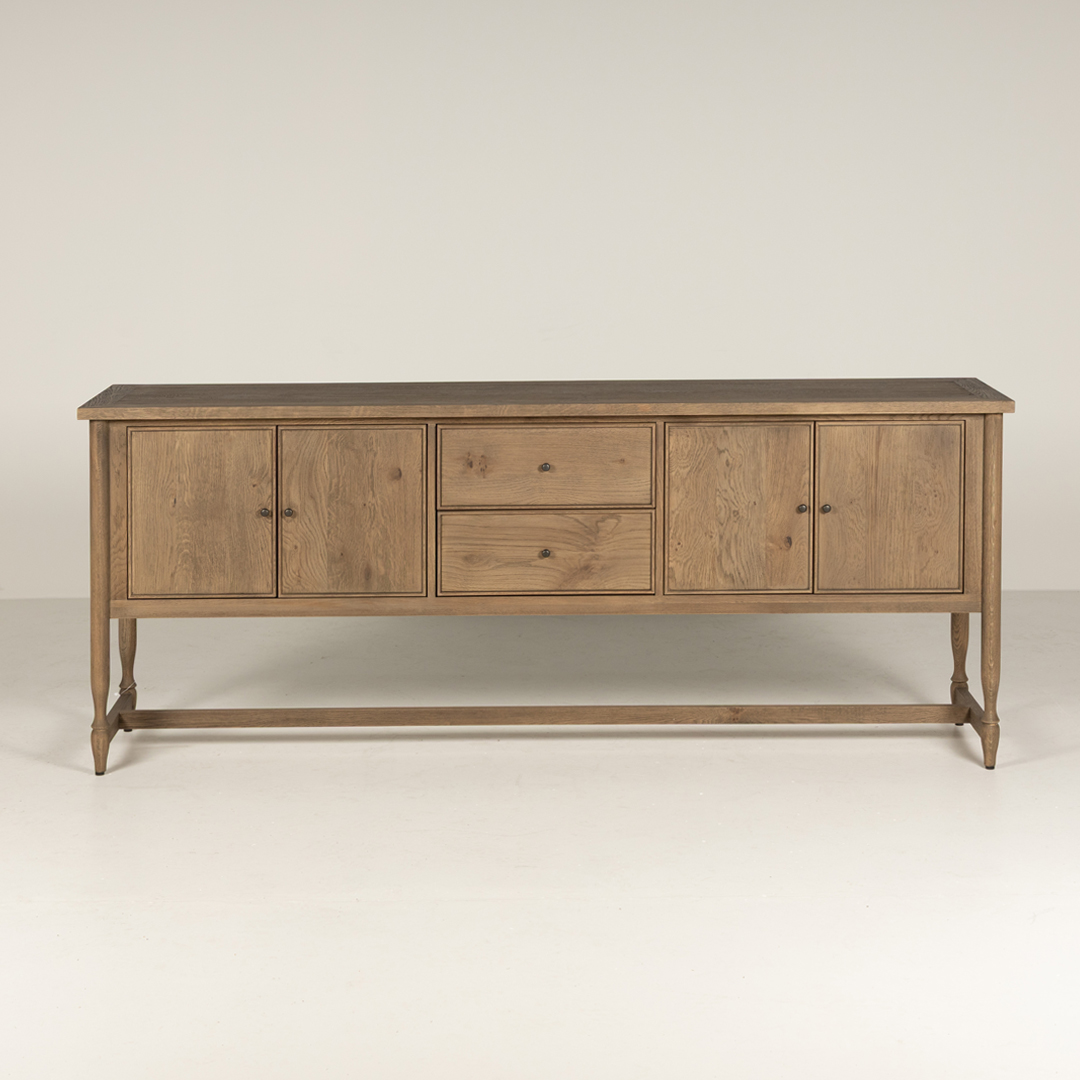 The Bernard Sideboard in Natural Oak is a must-have for both modern and classic homes. With its generous length and ample storage, featuring spacious cabinets and drawers, this sideboard offers the perfect blend of functionality and understated elegance. The natural oak finish, showcasing its stunning wood grain, brings warmth and character to your interiors, making it an ideal centrepiece for your living room, dining room, or hallway. As an entertainment unit or a sideboard to ground your room, the Bernard Sideboard combines sophistication with practicality.