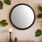This round mirror combines a black oak veneer frame with elegant gold detailing, creating a stunning balance of modern and classic design. its sleek round shape adds a touch of sophistication to any room, making it a perfect accent for entryways, living spaces, or bedrooms.