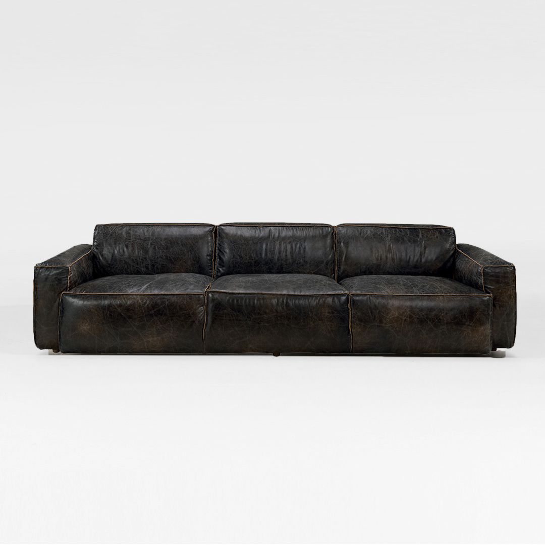 Buddy is an impressive 4-seater leather sofa that combines a robust design with genuine leather and exposed raw edges for a stylish, industrial look. This sofa is perfect for those seeking both functionality and a unique, timeless aesthetic. With its generous size, Buddy offers plenty of space for the whole family and creates a spacious and inviting atmosphere in the living room.