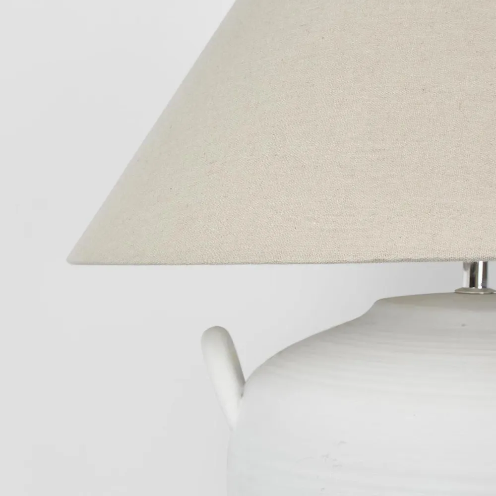 Camille White Table Lamp & Shade crafted from ceramic, offering a versatile charm. This piece is suitable for various settings.