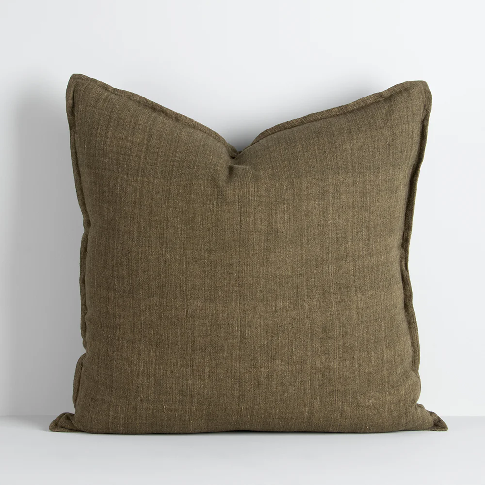 Handwoven from medium-weight linen, the Cassia collection offers timeless contemporary style. Its 1 cm flange edge, earthy moss tone, and subtle texture suit pared-back, thoughtful spaces. Pair with the Arcadia range to add contrast in size and shape.