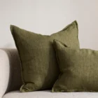 Handwoven from medium-weight linen, the Cassia collection offers timeless contemporary style. Its 1 cm flange edge, earthy moss tone, and subtle texture suit pared-back, thoughtful spaces. Pair with the Arcadia range to add contrast in size and shape.
