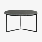 Coffee table with a stone top and metal base that combines elegant design with functionality. The round tabletop, crafted from natural stone, exudes a luxurious and sophisticated feel, while the sturdy three-legged metal base provides stability and a modern touch. The combination of these materials creates a timeless piece that fits perfectly into both classic and modern interiors.
