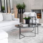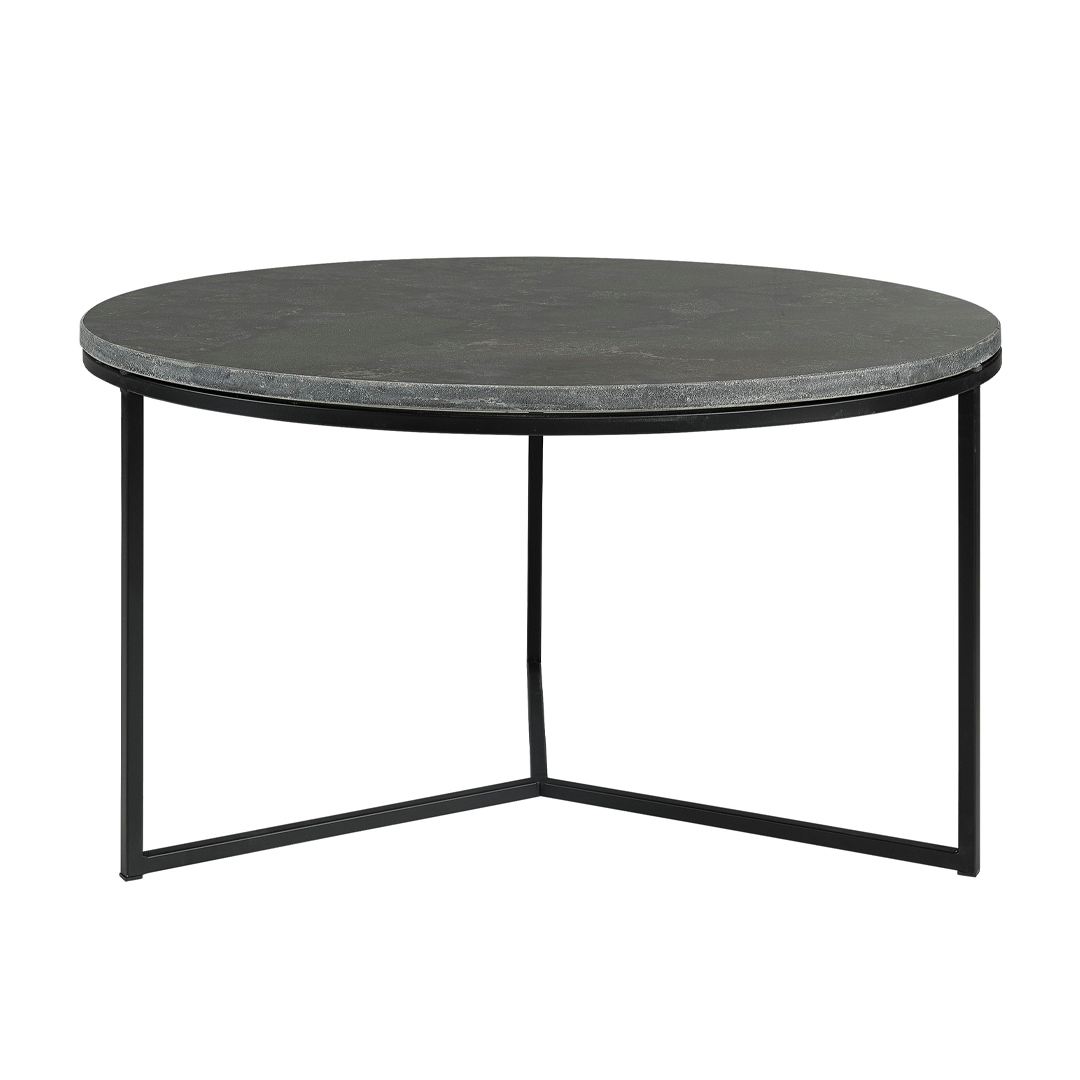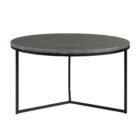 Coffee table with a stone top and metal base that combines elegant design with functionality. The round tabletop, crafted from natural stone, exudes a luxurious and sophisticated feel, while the sturdy three-legged metal base provides stability and a modern touch. The combination of these materials creates a timeless piece that fits perfectly into both classic and modern interiors.