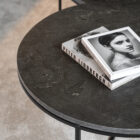 Side table with a stone top and metal base that combines elegant design with functionality. The round tabletop, crafted from natural stone, exudes a luxurious and sophisticated feel, while the sturdy three-legged metal base provides stability and a modern touch. The combination of these materials creates a timeless piece that fits perfectly into both classic and modern interiors. Each table is unique in appearance due to the natural variations in the stone, adding a personal and exclusive touch to your home. The round shape makes this side table a harmonious and stylish accent, perfect next to the sofa, as a bedside table, or in the hallway.