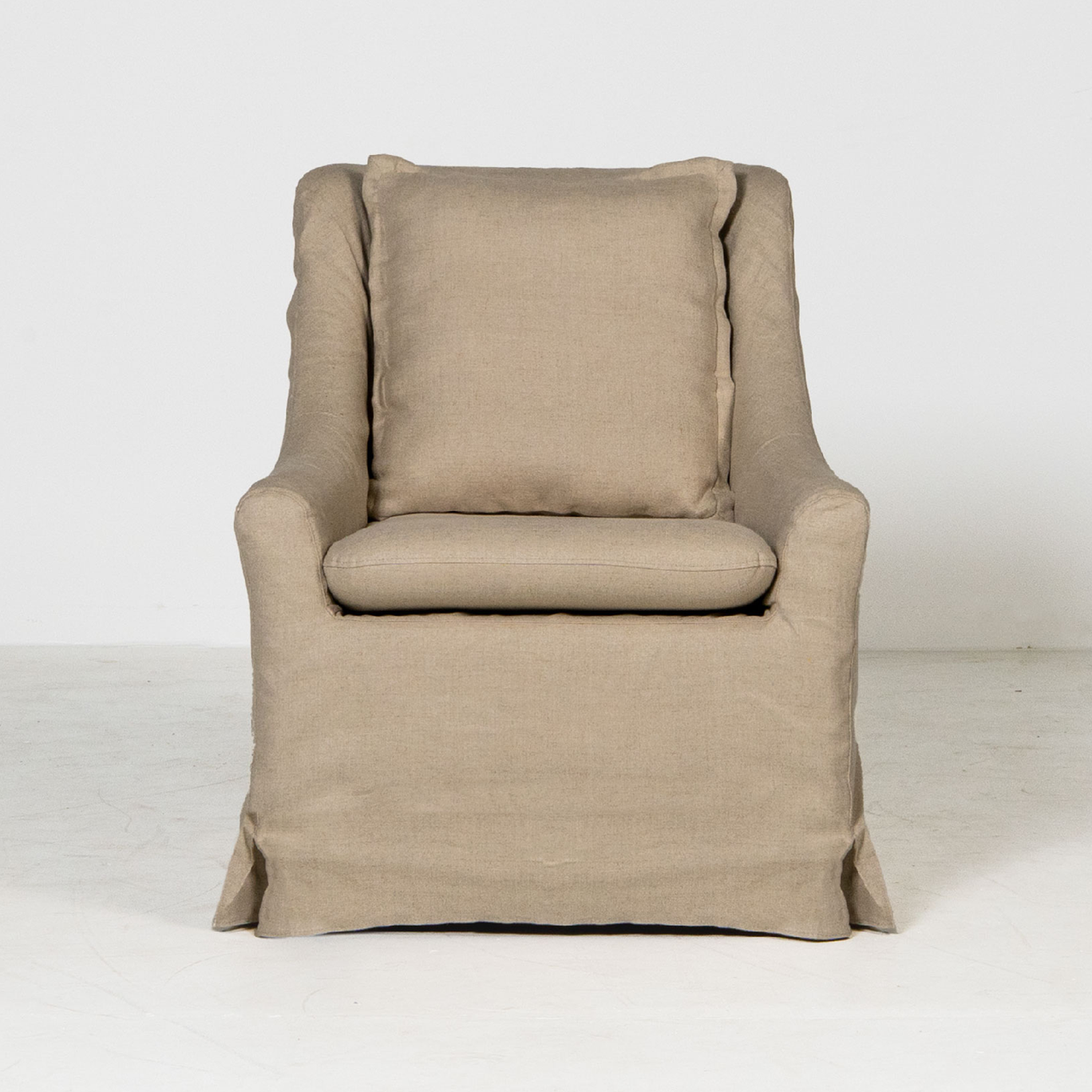 Elegant and inviting, the Chelsea Armchair in Belgium linen offers plush comfort and timeless style. Perfect as an accent chair or paired with the matching 3-seater, it brings a refined touch to any living space.