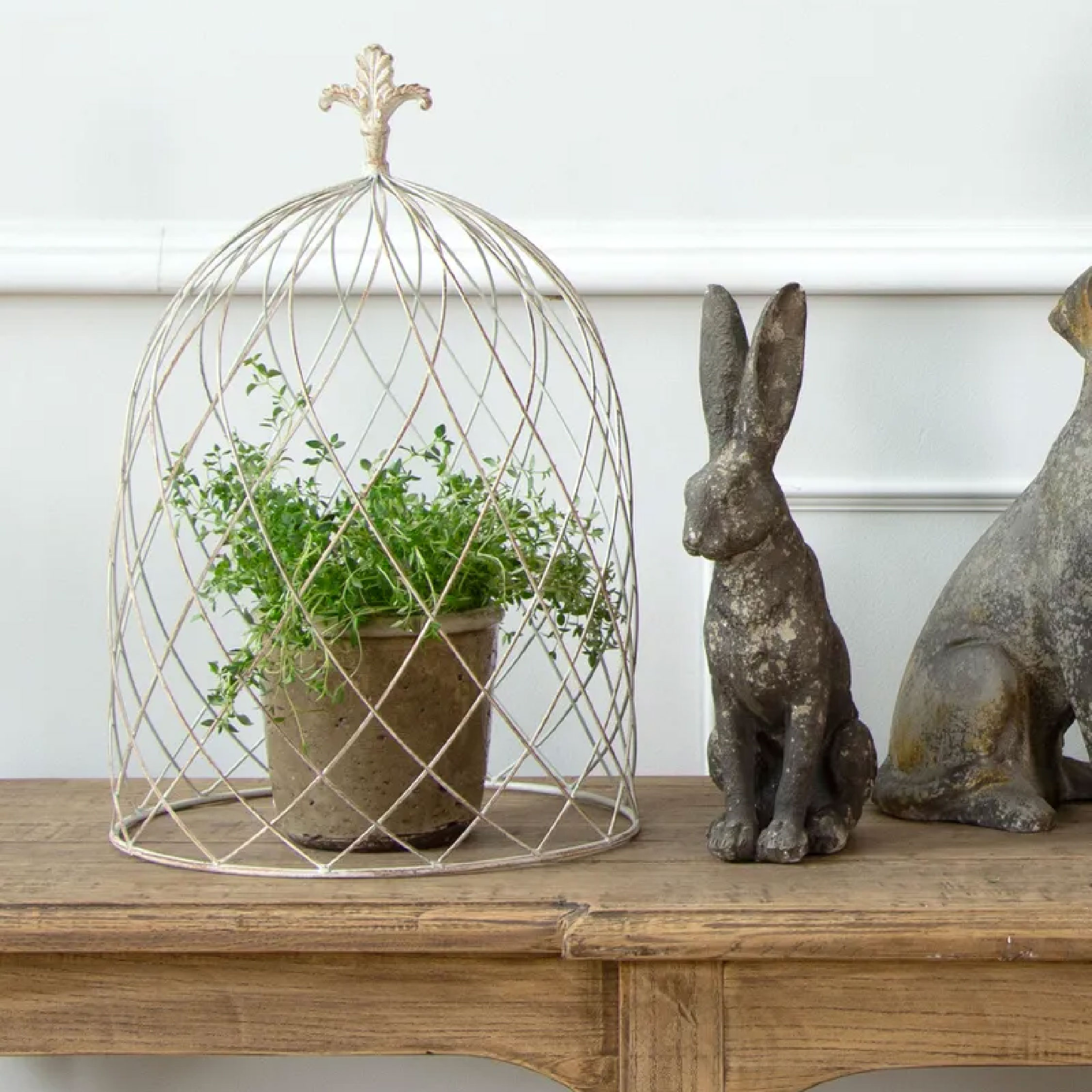 White wash set of 3 cloche domes, an ornamental addition to the garden to cover plants like strawberries in the garden.