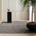 Handcrafted from pure New Zealand wool, the Corbett rug’s lightly distressed design and soft charcoal tone are perfect for creating contemporary living spaces. Featuring a short fringe and minimal pile height, the vintage character adds ambience and mottled texture to living spaces.
