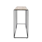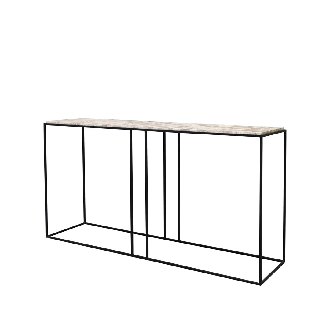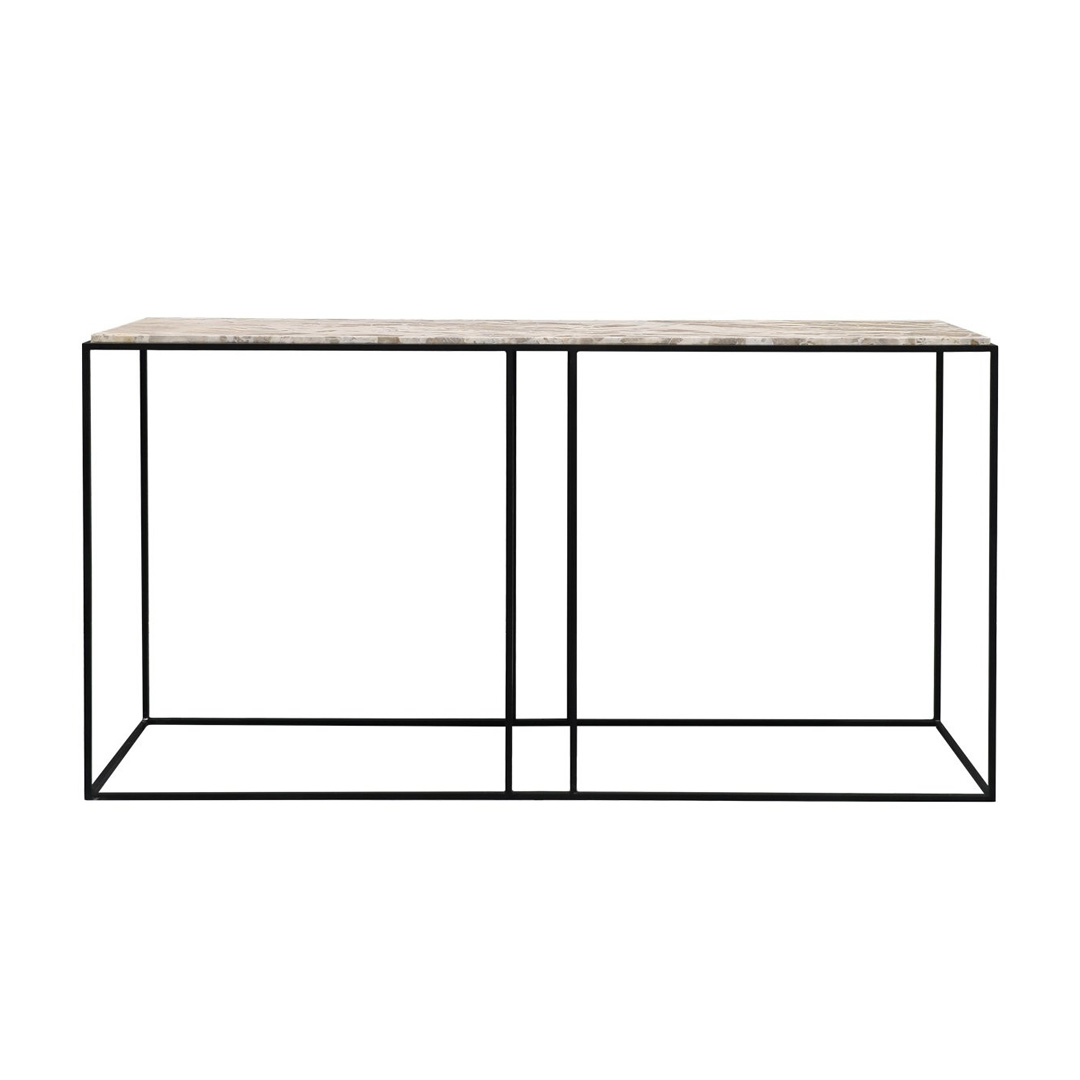 Embrace the beautiful multi-tonal effect of beige marble, inset and framed by sleek black powdercoated steel creating a stunning focal point for any living space. Â Each piece of marble is unique, with captivating visual appeal and exuding sophistication and style. Â Perfect for displaying one or two individual pieces, this console table adds a touch of luxury to your home decor.