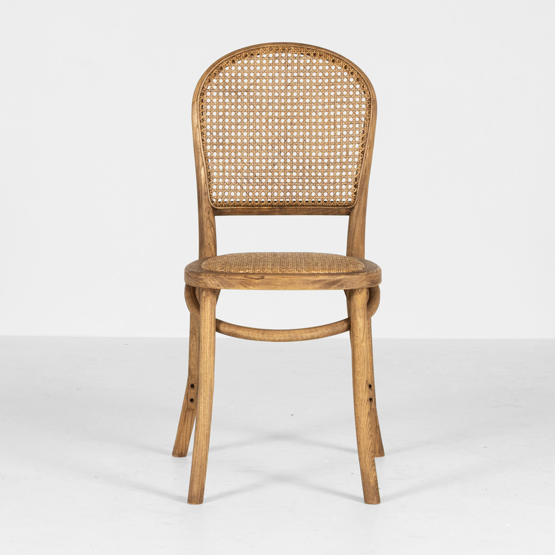 French style dining chair crafted from rattan and oak.
