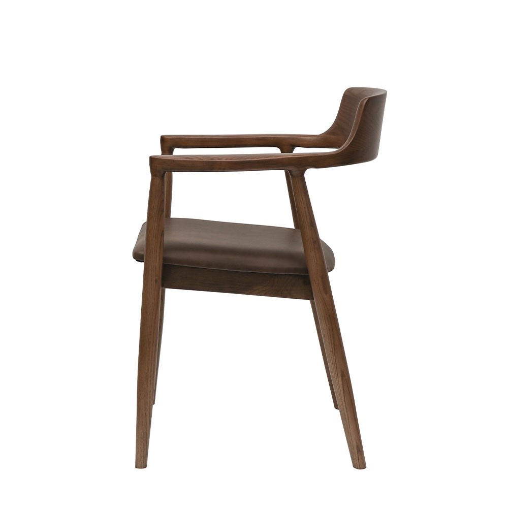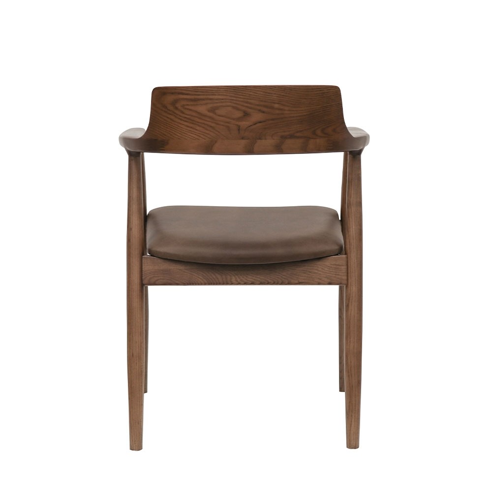 The Ealing Dining Chair features a carefully curved back that flows seamlessly into refined armrests, combining sculptural form with practical comfort. Its padded seat is designed for extended use and is available in a range of finishes to complement diverse interiors.
