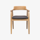The Ealing Dining Chair features a carefully curved back that flows seamlessly into refined armrests, combining sculptural form with practical comfort. Its padded seat is designed for extended use and is available in a range of finishes to complement diverse interiors.