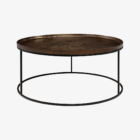 The round coffee table in vintage brass combines industrial charm with timeless elegance. The tabletop features a beautiful and unique finish that makes each table truly one of a kind, while the sturdy black metal frame provides a stable and sleek base. It is the perfect choice for those looking for a statement piece that adds both character and functionality to their living room. The table’s design fits seamlessly into both modern and classic interiors, creating an inviting and sophisticated atmosphere.