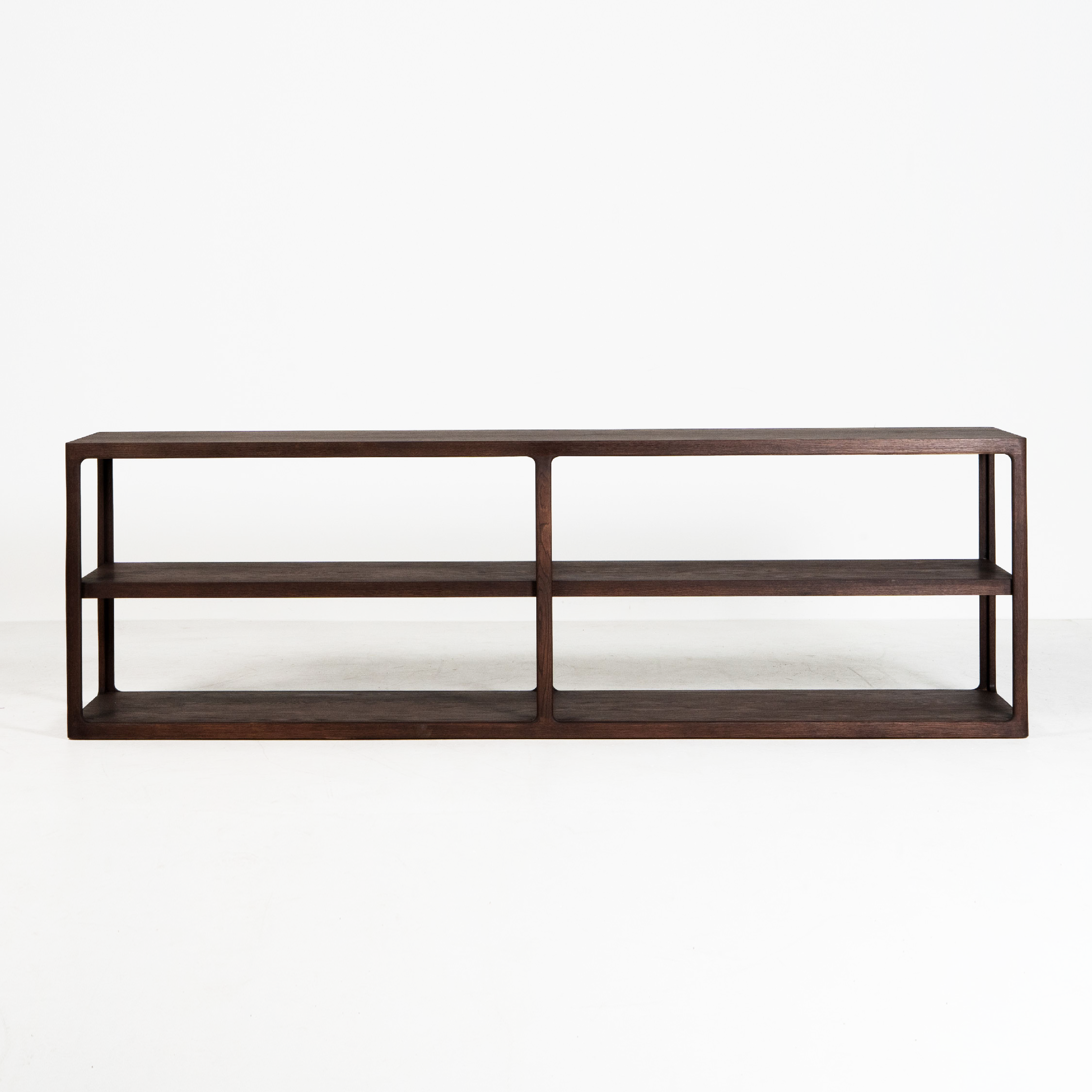 The Florence Console Table, crafted from solid oak with softly curved edges, blends refined elegance with practical design. Its open shelf adds functional storage, while custom sizes and finishes make it easy to adapt to any space.