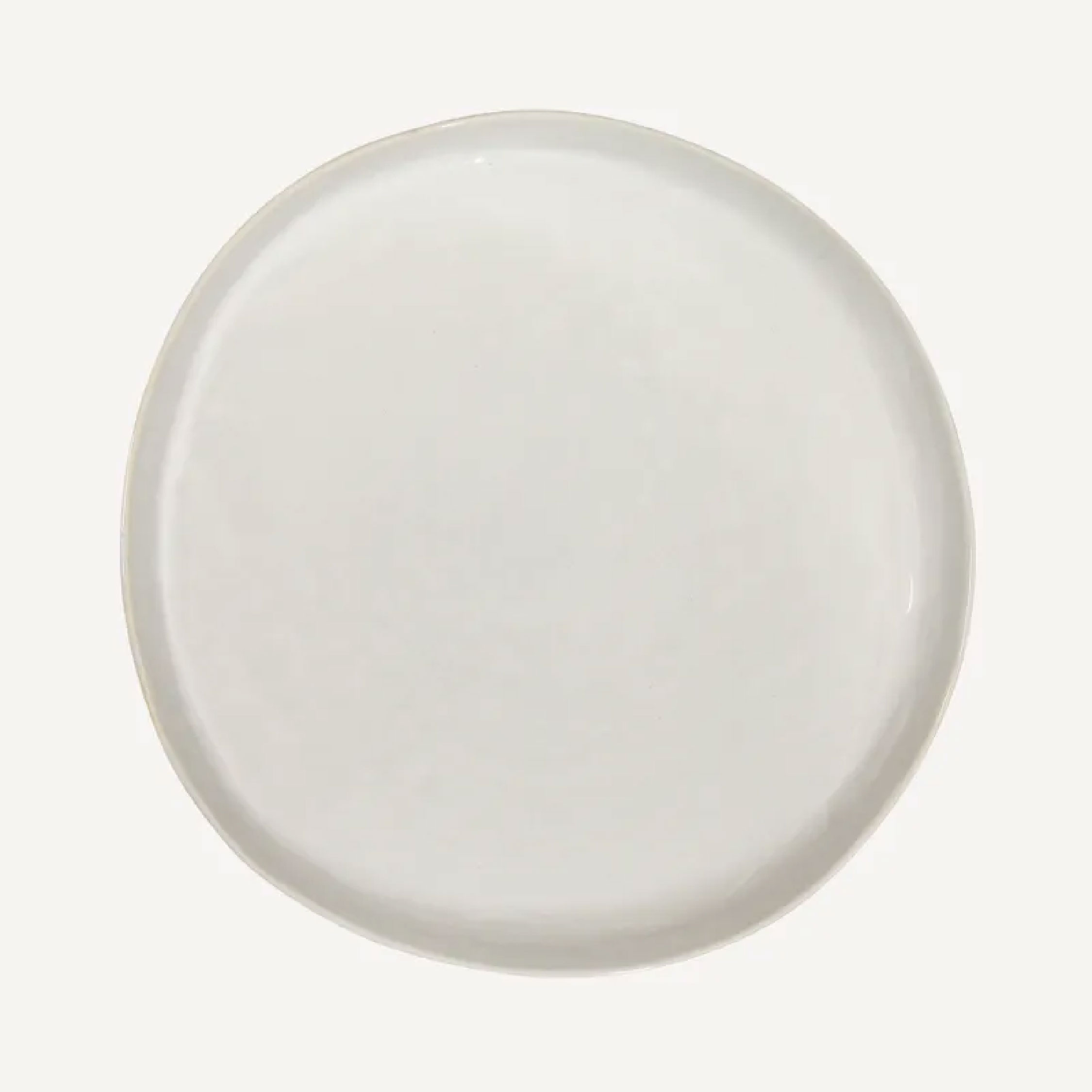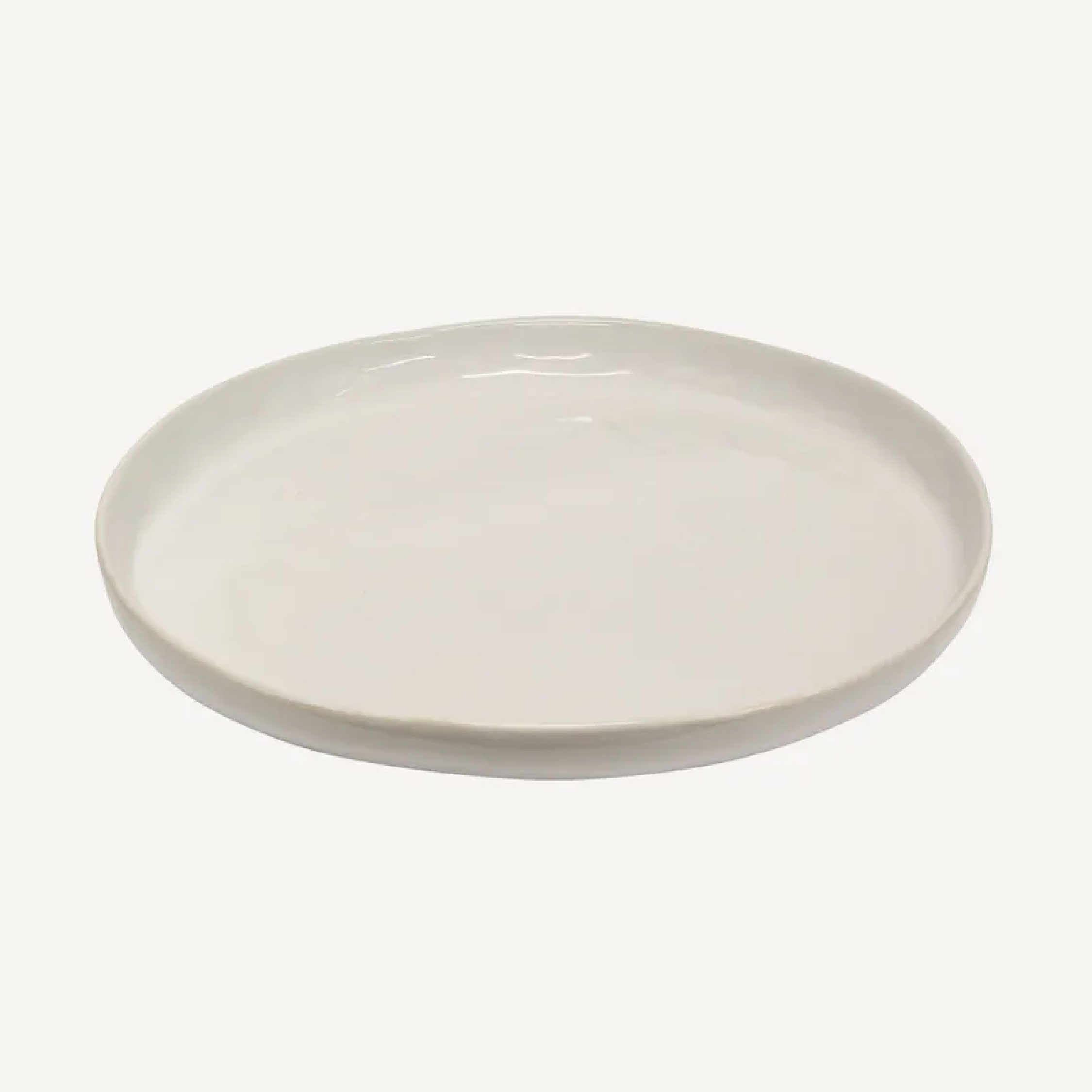 Large freeform dinner plate in rustic white, made from 100% terra-cotta makes a neutral canvas for your more lavish summer feasts.
