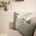 Country charm meets modern style in the Frankton cushion. Crafted from thick, textured linen, its asymmetric design and raw fringing bring a contemporary twist. Ecru and sage tones pair effortlessly with Cyprian Oatmeal and Arcadia Sage cushions.
