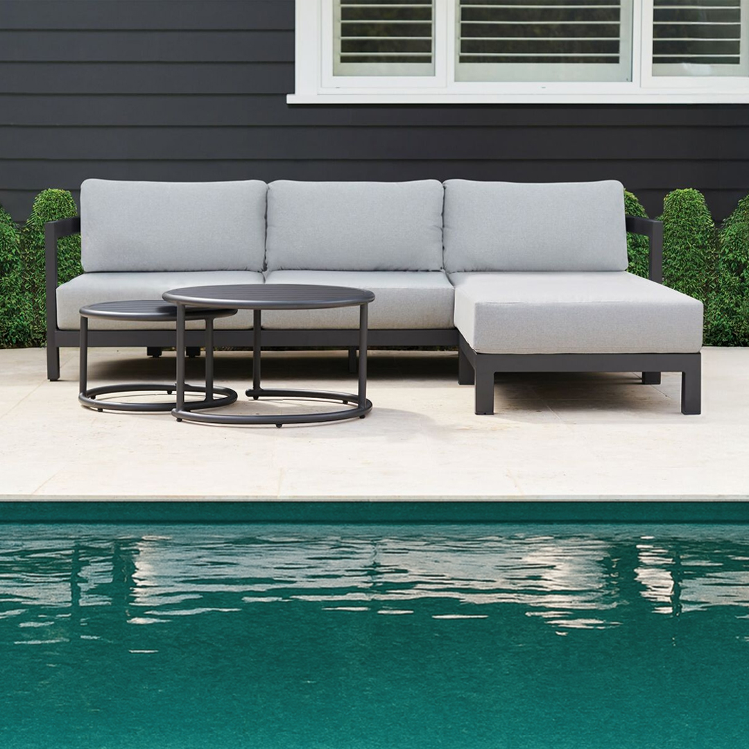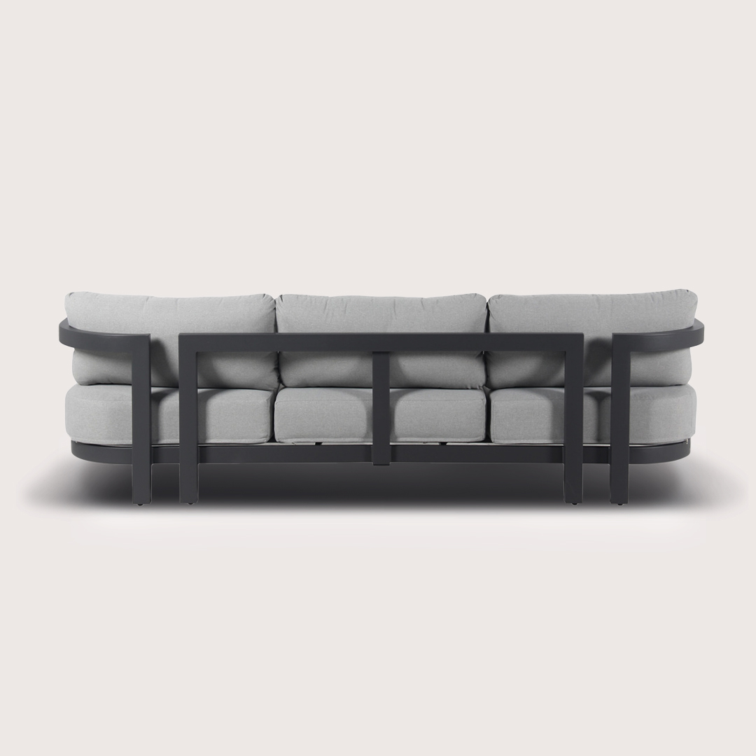 Transform your outdoor living area with the contemporary Hargrove 4-pce lounge suite featuring 3-seater sofa, ottoman and coffee tables. The gun metal powder coated aluminium design is both stylish and durable and the grey seat and back cushions are designed for comfort. The Hargrove 4-pce lounge suite is an inviting suite to relax with family and friends and will become the focal point of your outdoor living area.