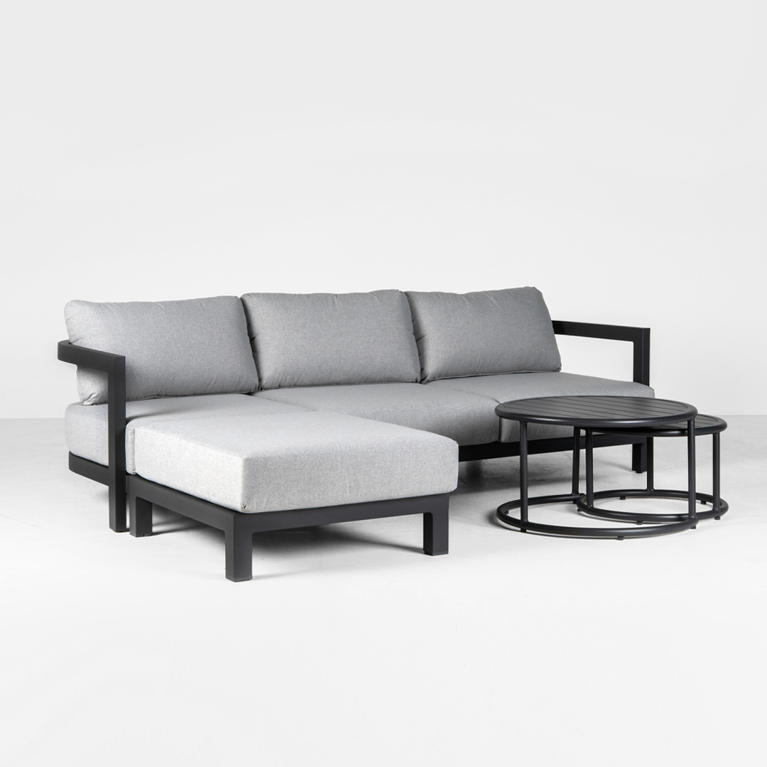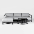 Transform your outdoor living area with the contemporary Hargrove 4-pce lounge suite featuring 3-seater sofa, ottoman and coffee tables. The gun metal powder coated aluminium design is both stylish and durable and the grey seat and back cushions are designed for comfort. The Hargrove 4-pce lounge suite is an inviting suite to relax with family and friends and will become the focal point of your outdoor living area.