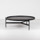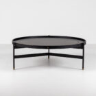 Befitting of a number of different interior styles, the shorter Haywood Black Coffee Table sits wonderfully on its own, or alongside the taller Haywood table for a layered more formal look. Crafted using Ash, leather and powder coated steel, then accented with brass feet and tacks and finished with a black satin lacquer.