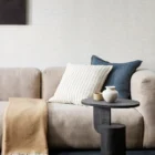 Celebrating artisanal craftsmanship, Hokkaido is a richly textured piece in a neutral tone with a delicate navy linear design. Handwoven from a wool and cotton blend, its tactile surface creates a cosy, inviting feel.