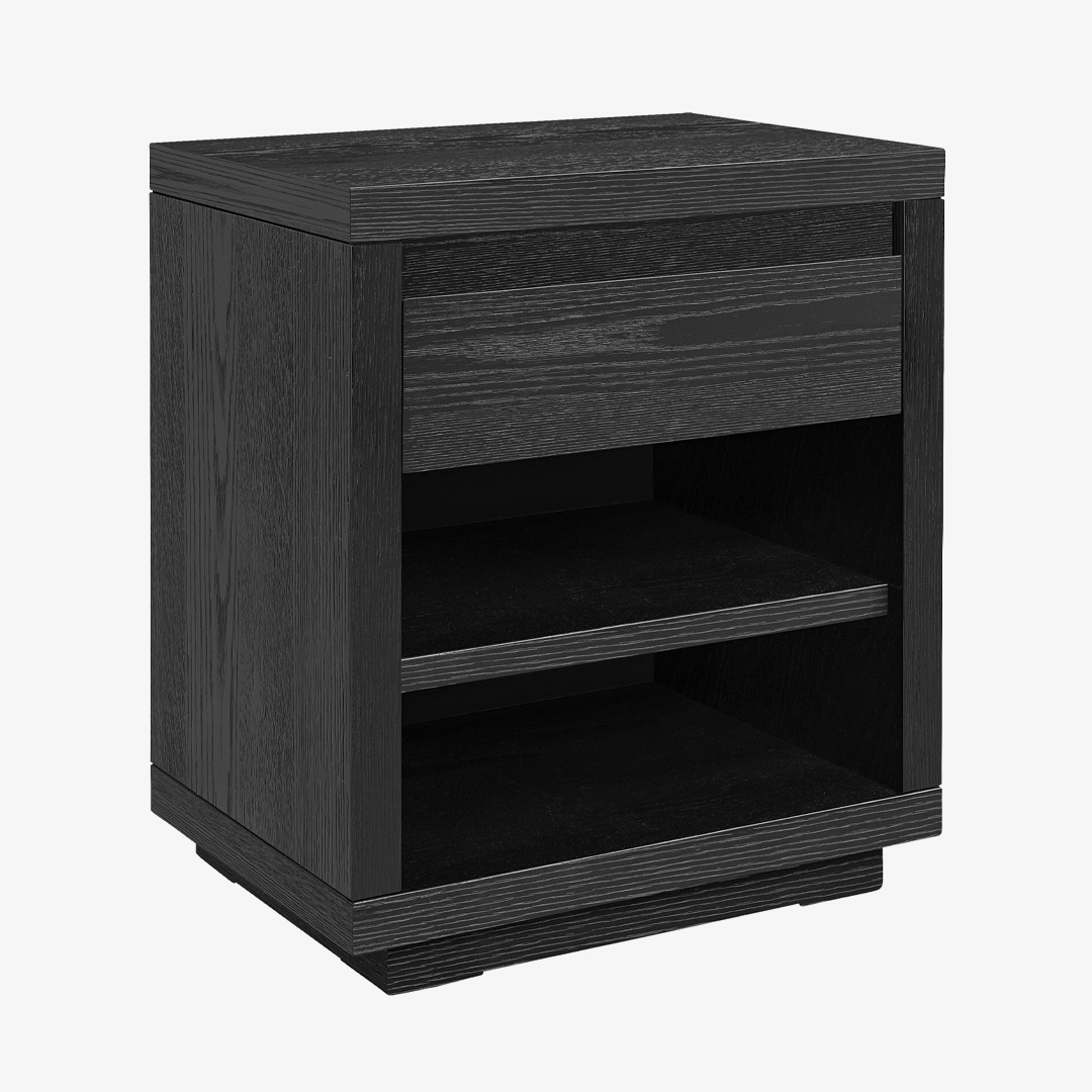 Hunter bedside table consists of oak veneer in the color Antique Grey. The Hunter series gives a modern and robust impression with it’s minimalist design and clear wooden structure. The bedside table has one pull-out drawer, and one shelf that can be removed if needed.