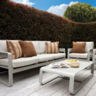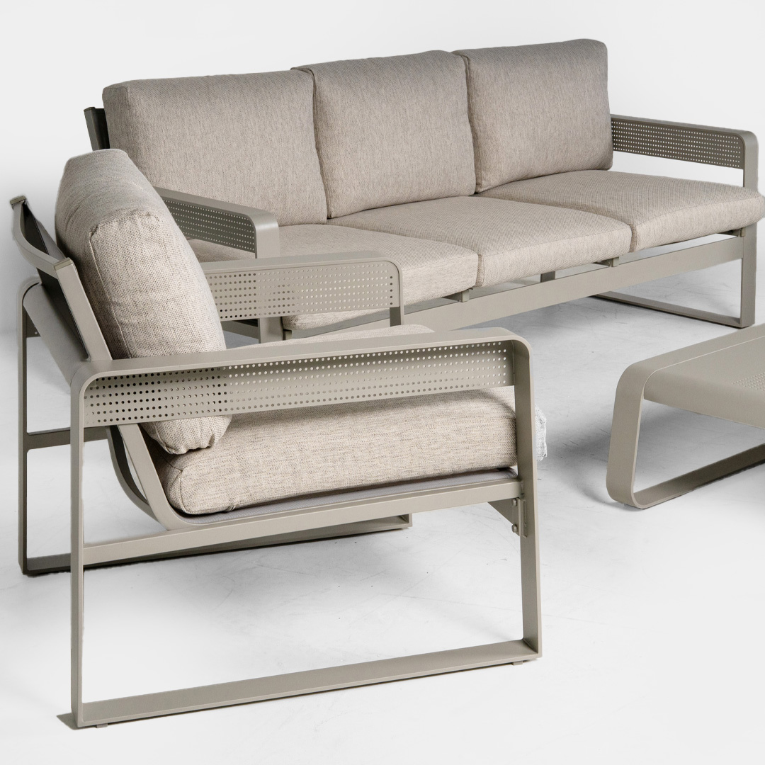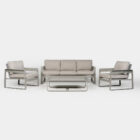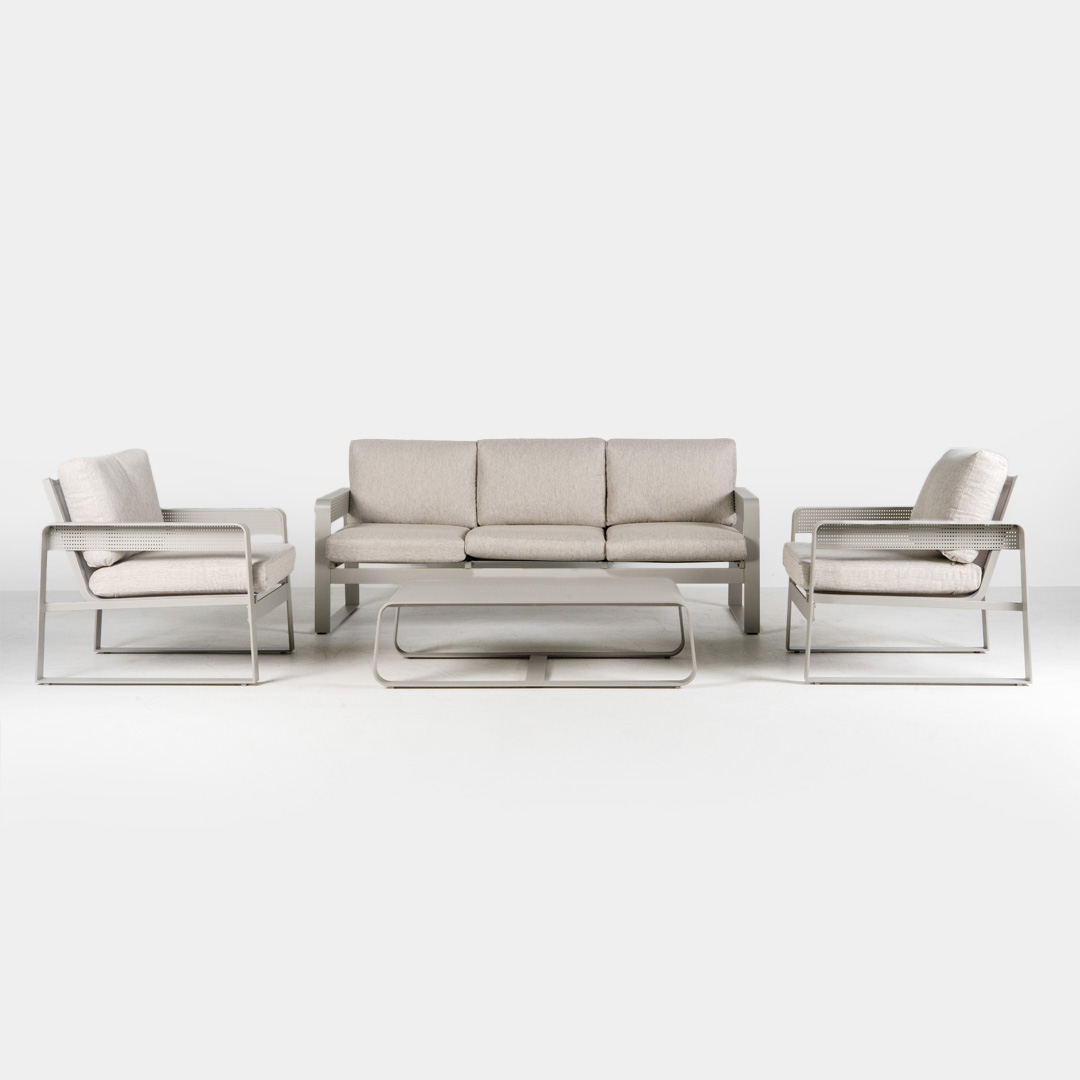 Transform your outdoor living area with the contemporary Ibiza 4-pce lounge suite. The black powder coated aluminium design is both stylish and durable and the seat and cushions are designed for comfort. The Ibiza 4-pce lounge suite is an inviting suite to relax with family and friends and will become the focal point of your outdoor living area.