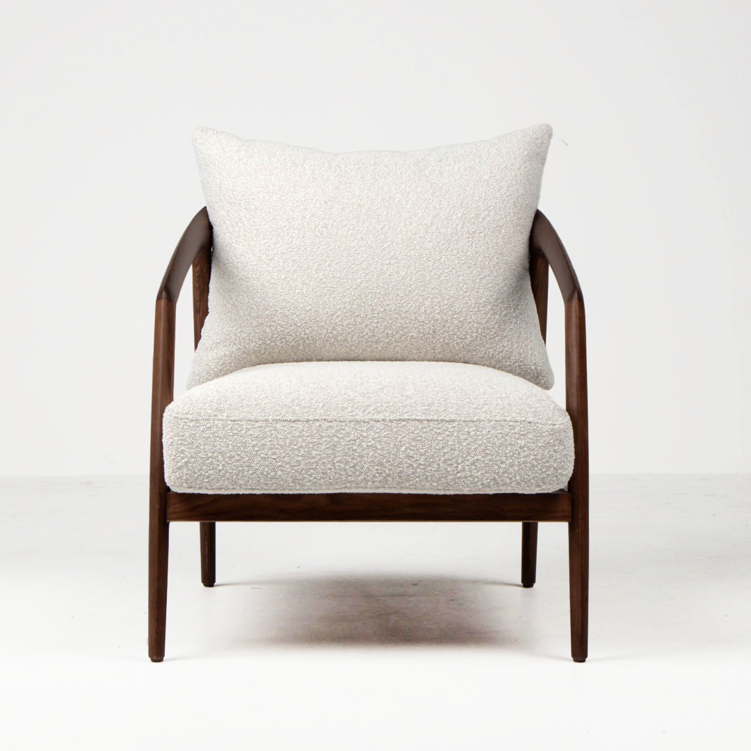 Introducing the stunning Leo Armchair with its rich timber frame and luxurious textured upholstery, it’s the perfect blend of sculptural elegance and cozy comfort. A modern classic that elevates any space with ease.
