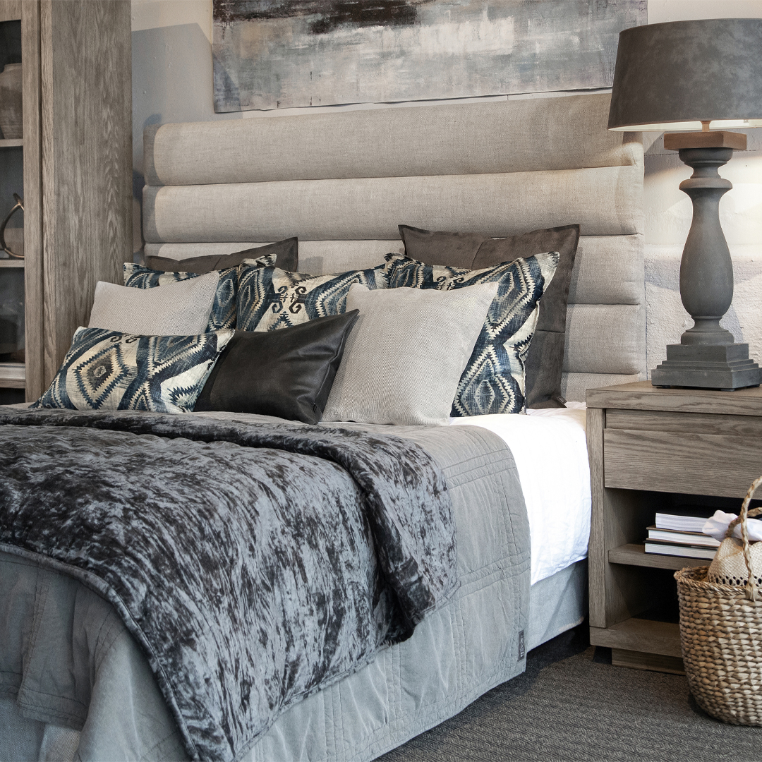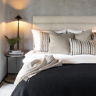 A padded linen headboard combines sophisticated design with comfort. The decorative horizontal stitching provides a sleek and modern look that elevates your bedroom. The soft linen texture creates an inviting feel, while the padding offers extra comfort for reading or relaxing in bed. Oak legs. Perfectly suited for both classic and modern bedroom environments.