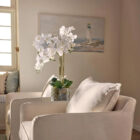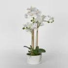 Take a stroll through a botanical wonderland with every glance at our artificial Luxe Phalaenopsis in Ribbed Bowl. Crafted with cutting-edge technology, these hyperrealistic 3-stemmed Phalaenopsis orchids, with their graceful arches and showy blooms, are nestled in a pristine white ribbed bowl. Indistinguishable from their living counterparts, minus the wilting woes and pesky allergies. No assembly required, simply dust with a static feather and watch as they effortlessly elevate your living room, dining table, or office space.