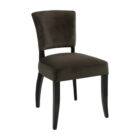 Introducing our elegant dining chair, designed to elevate your dining experience with a touch of sophistication. This chair features dark brown legs that provide a sturdy and stylish foundation. The seat and upper back section are luxuriously upholstered in black velvet, offering a plush and comfortable seating experience. The design includes a unique lower back gap, ensuring not only a modern aesthetic but also enhanced breathability and comfort. Perfect for contemporary dining spaces, this chair seamlessly blends elegance and functionality, making it an ideal addition to your home.