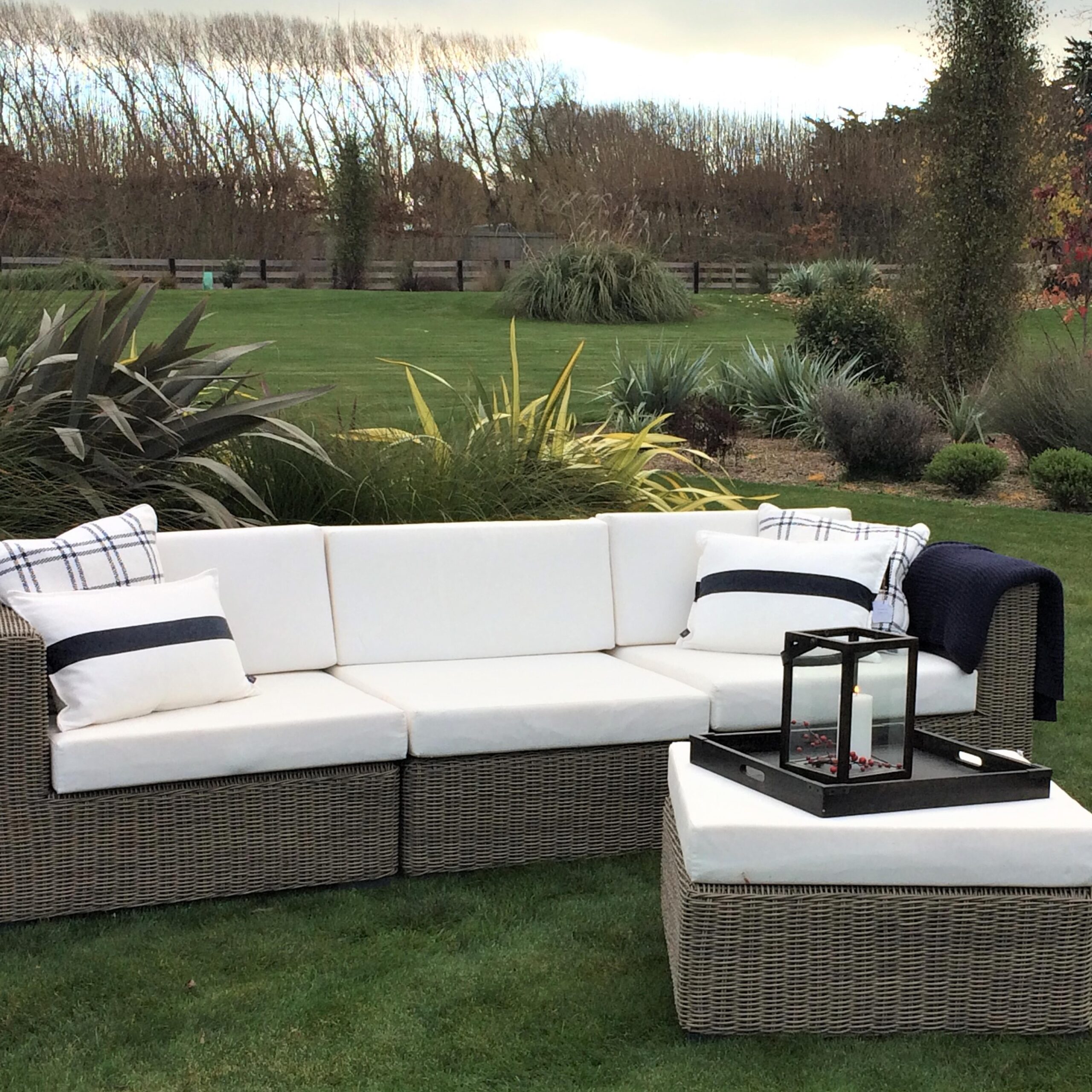 Classic wicker style furniture, created on a rustproof powder coated aluminium frame using handwoven polyethylene weave that combines a classical natural “vintage” finish with extreme durability. Complemented with outdoor cushions in quick dry foam and solution dyed acrylic fabric.