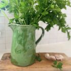 A striking ceramic jug in a soft green glaze, perfect for styling with florals or as a decorative accent. Hand-glazed with natural variations in finish for a unique, organic look.