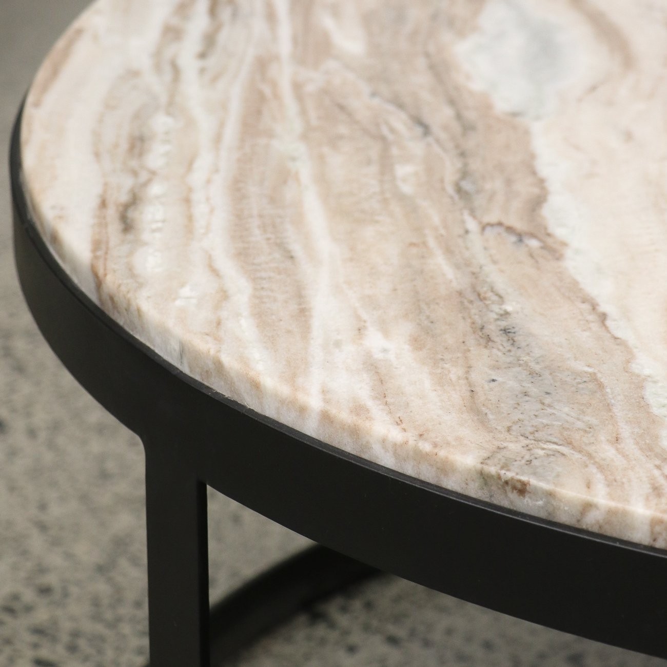 Redefine your living space with the Monaco Coffee Table, where luxury meets versatility. This medium table features warm taupe Fantasy marble, rich with natural variation, set on a sleek black base for a striking contrast.