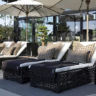 Classic wicker style furniture, created on a rustproof powder coated aluminium frame using handwoven polyethylene weave that combines a classical natural “vintage” finish with extreme durability. Complemented with outdoor cushions in quick dry foam and solution dyed acrylic fabric.