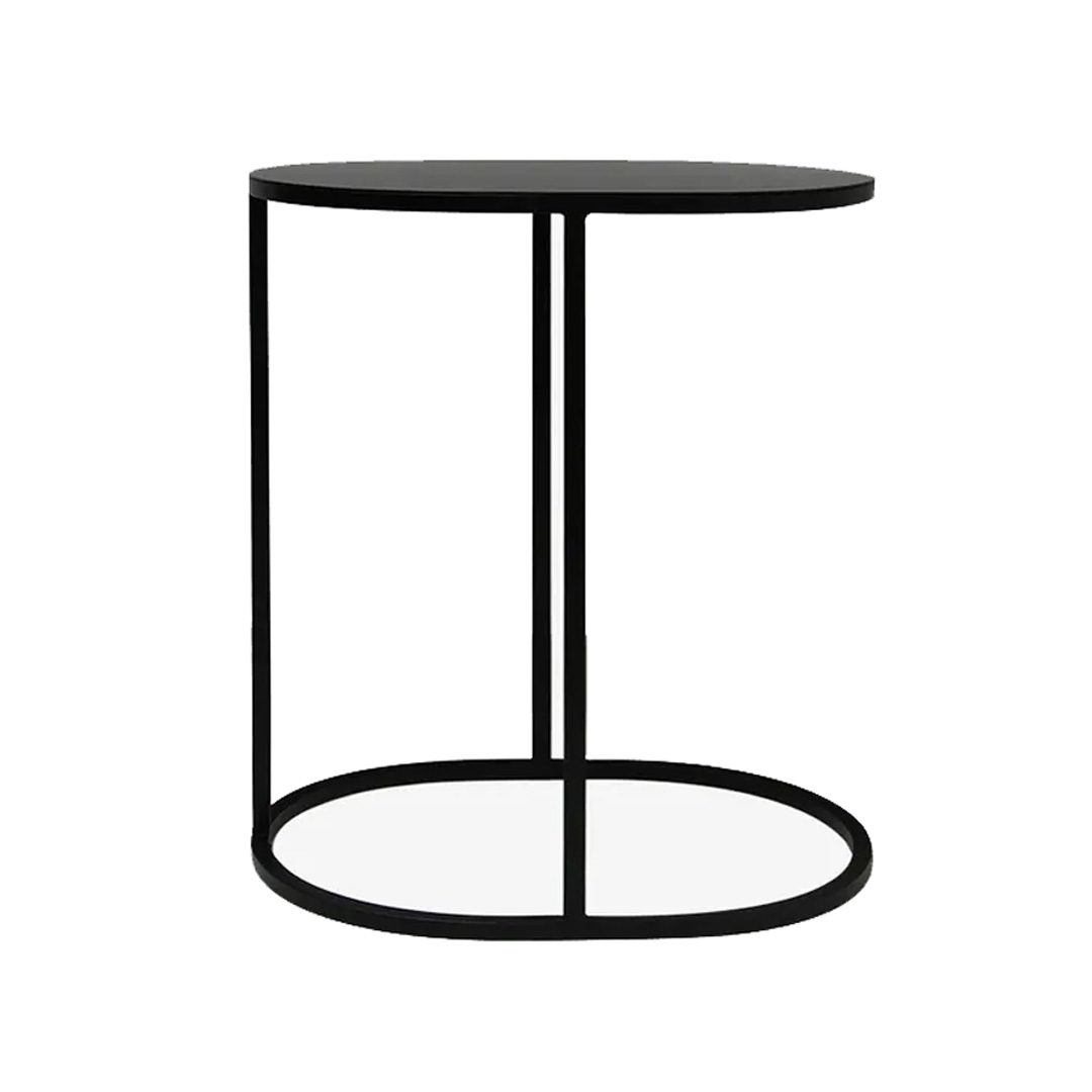 The Oval Couch Side Table in Black is a versatile and stylish addition to any living room. Its sleek oval shape and minimalist design make it perfect for fitting next to most sofa heights, providing an elegant surface for drinks, lamps, or décor. The timeless black finish ensures it complements any interior, from modern to traditional, while its compact size makes it ideal for smaller spaces. Whether used as a functional side table or as a statement piece, this table offers both style and practicality in a compact, chic package.