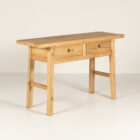 A handsome example of less really being more, this 2 drawer Butchers style console is a simple yet practical piece with a distressed finish that makes it right at home in both traditional or coastal settings.