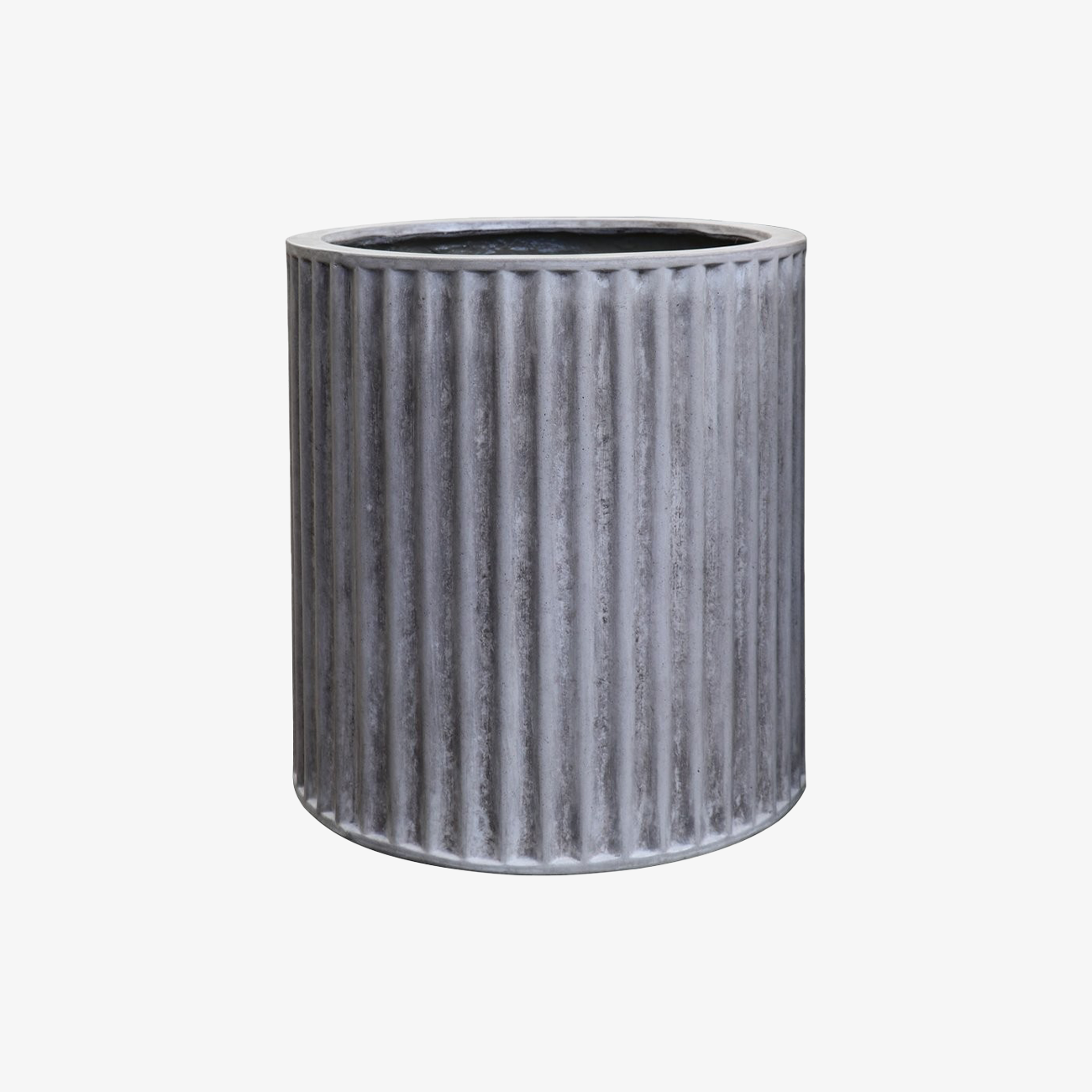 Handcrafted in fibre reinforced concrete with a weathered cement finish in a classic Cylinder shape.