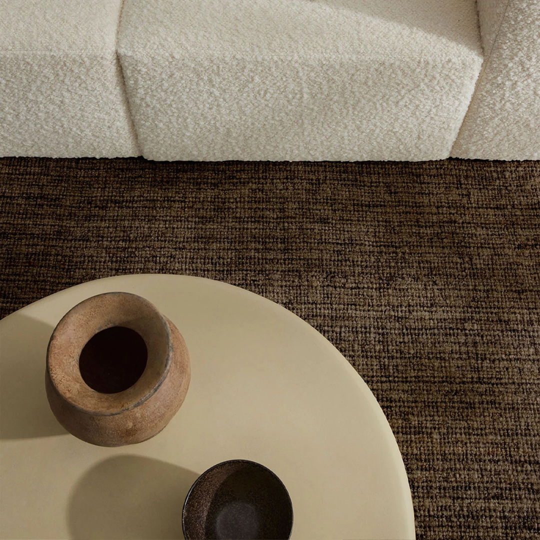 Texture and colour come to life in the Puglia rug, showcasing a chunky woven design that blends sophistication with rustic charm. Finished with a distinctive fringe, this rug adds a touch of elegance and character to any space. The Fossil colourway is a refined, muted shade with a blend of brown, grey, and taupe, reminiscent of natural stone.