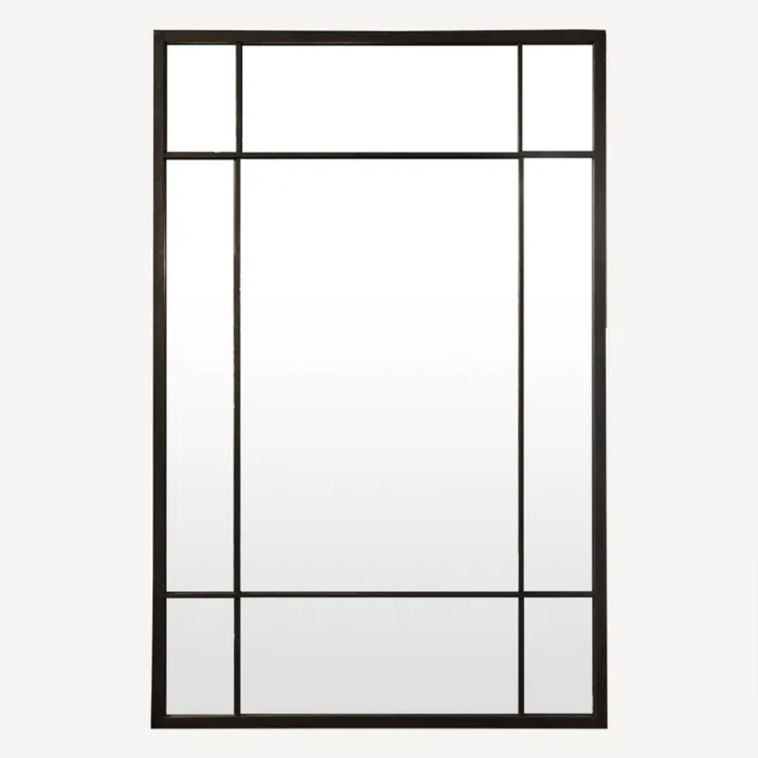 Versatile rectangle grid mirror with aged rustic black metal framing, works in easily with most interior styles. Hang alone or grouped together for maximum effect.