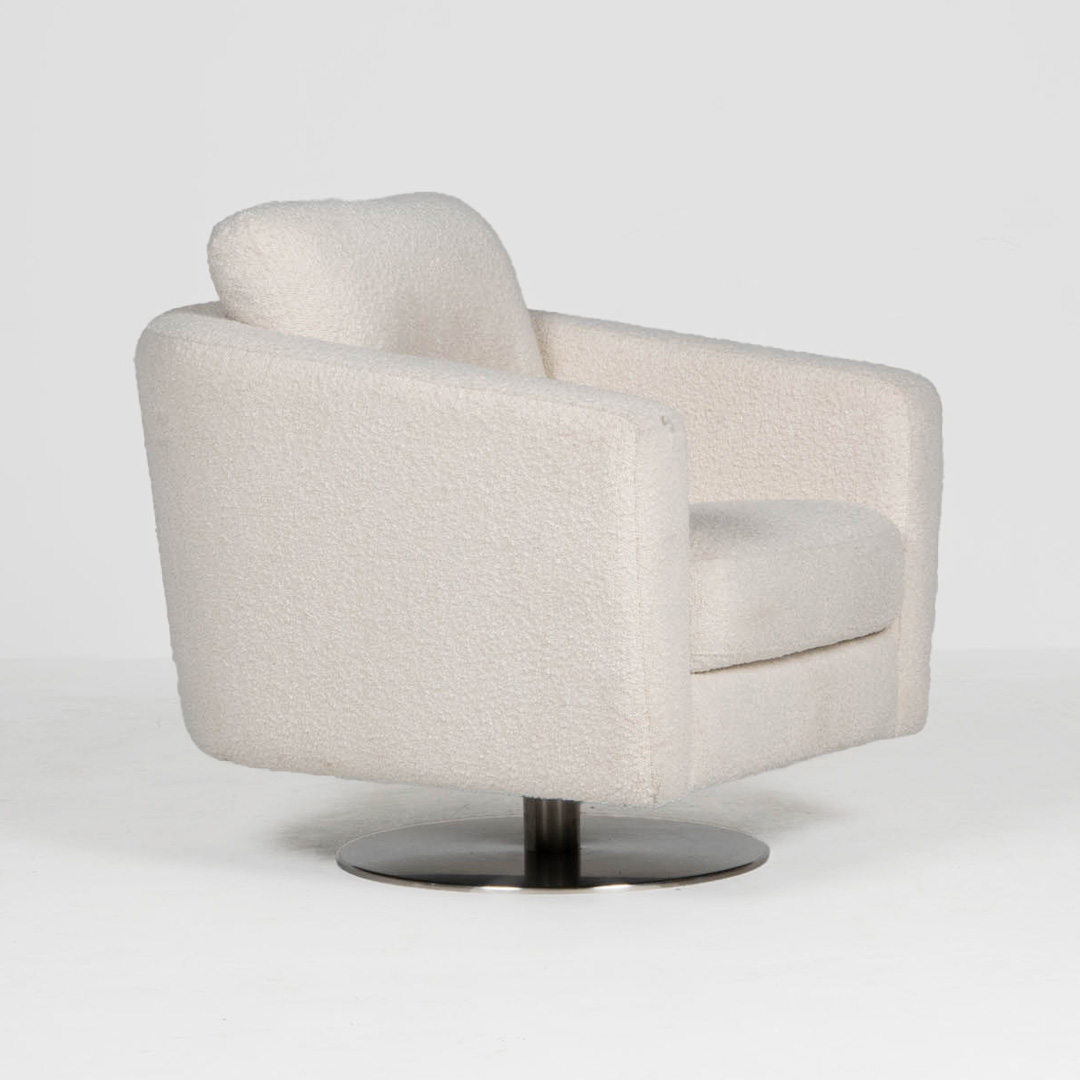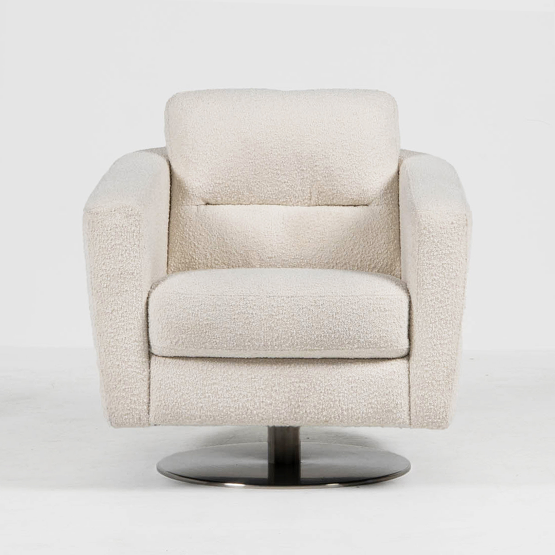 The Roma chair celebrates modernism from its refined, lineal profile down to its powder coated swivel base. A striking, slightly angled out base up to a square arm lends interest to this urban piece. It’s available, new Zealand-made, in any of our huge range of fabrics and is stunning in leather.