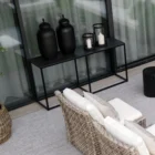 The ROMANO OUTDOOR SIDE TABLE is the perfect combination of style and functionality for your outdoor space. The Romano Outdoor Collection features a sintered stone top with a black aluminium base.
