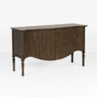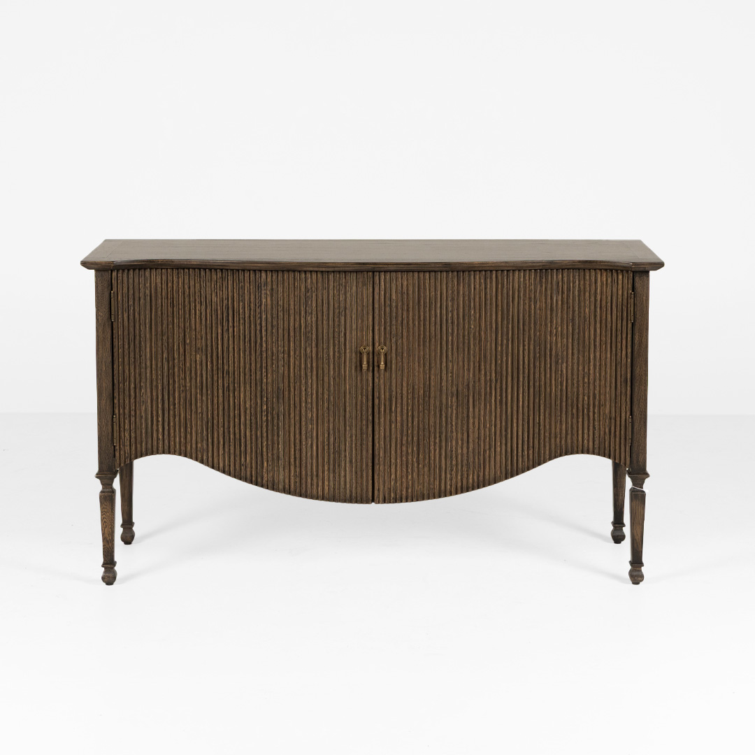 The Saddle Hall Sideboard is the perfect fusion of old-world charm and modern elegance. Featuring gracefully shaped doors with refined ridged detailing in a rich antique brown stain and dropped pendant hardware. This striking cabinet exudes a distinguished look that makes it an ideal piece of furniture in an entranceway, hallway or living area, while offering ample storage space behind it’s elegantly crafted doors.