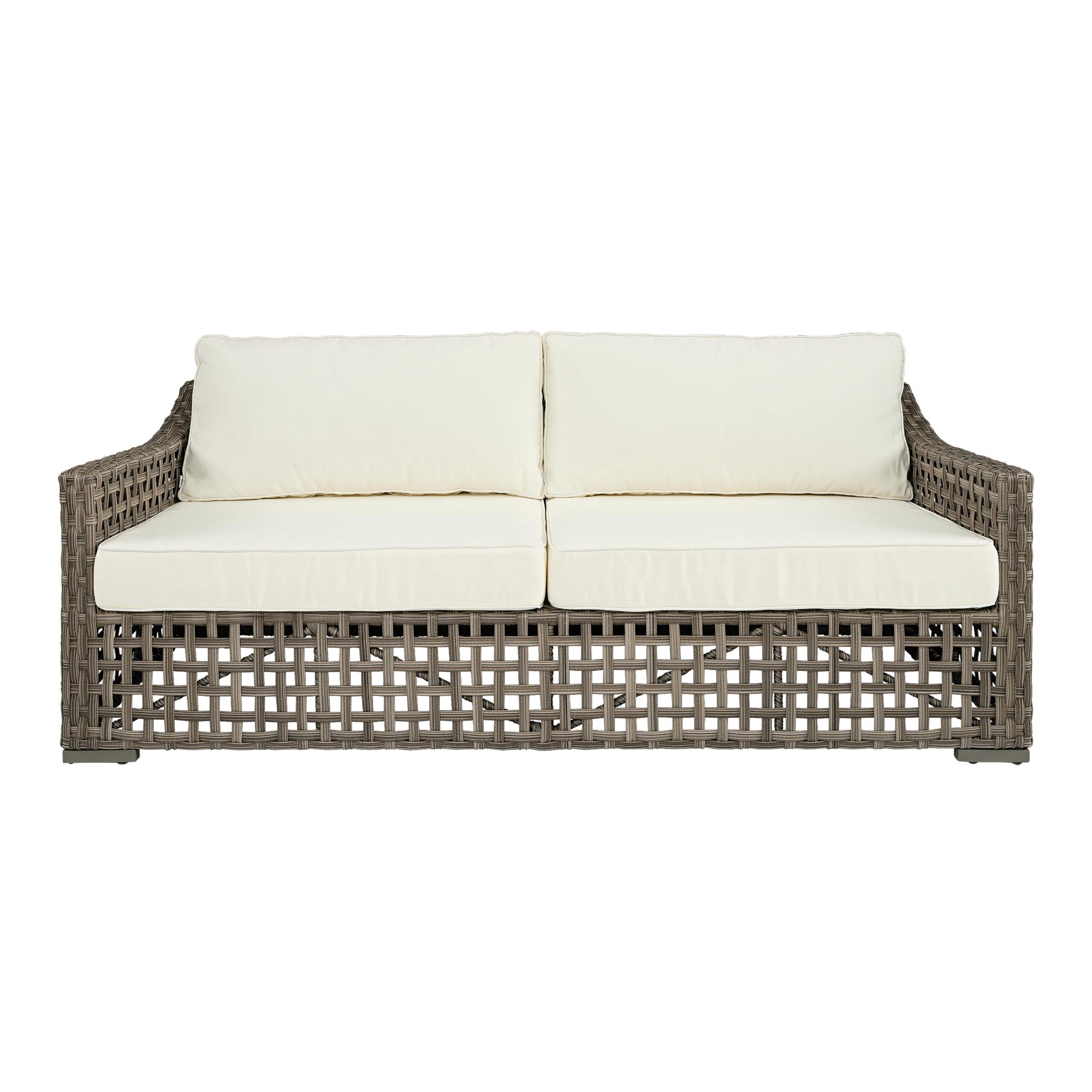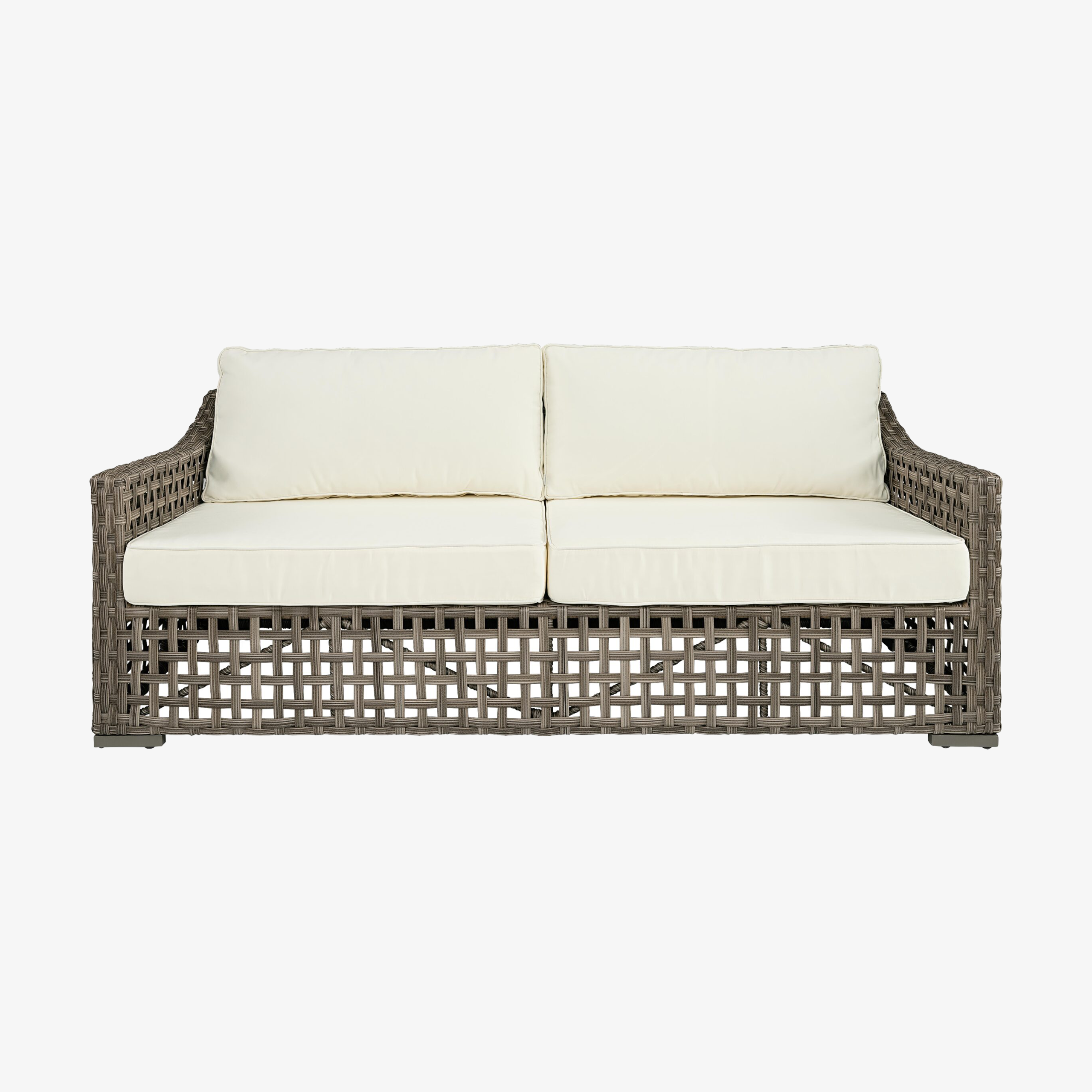 Classic wicker style furniture, created on a rustproof powder coated aluminium frame using handwoven polyethylene weave that combines a classical natural “vintage” finish with extreme durability. Complemented with outdoor cushions in quick dry foam and solution dyed acrylic fabric.